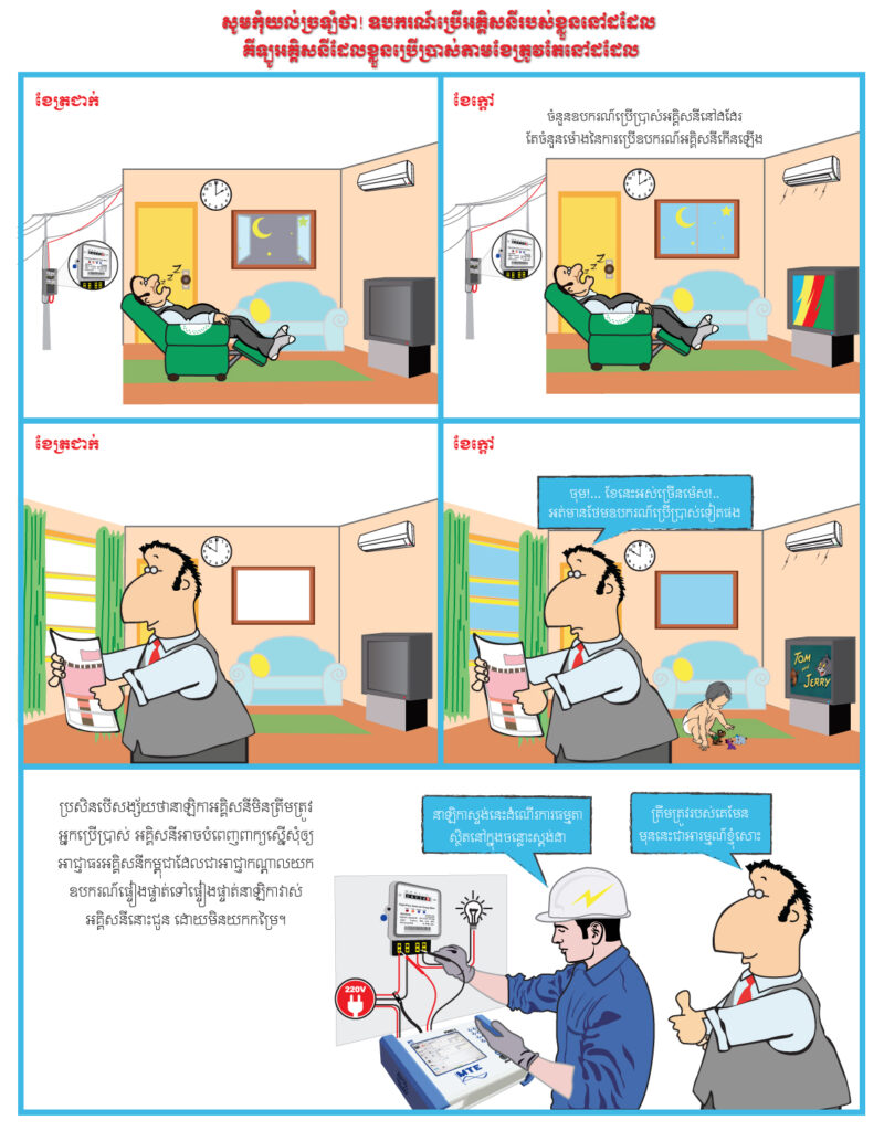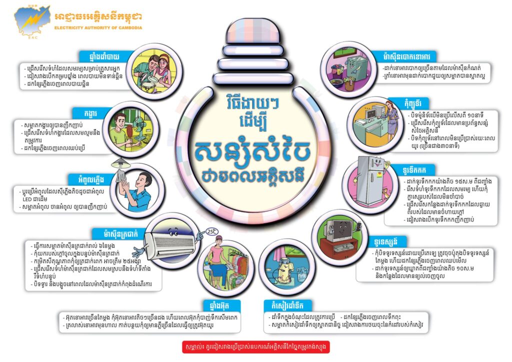 ទាំងអស់នេះជាកត្តាមួយចំនួនដែលធ្វើឱ្យបរិមាណថាមពលប្រើប្រាស់កើនឡើងដោយមិនដឹងខ្លួន ដូច្នេះដើម្បីចូលរួមកាត់បន្ថយការចំណាយទៅលើការប្រើប្រាស់អគ្គិសនី និងប្រើអគ្គិសនីដោយសុវត្ថិភាព អ្នកប្រើប្រាស់ត្រូវតាមដានការប្រើប្រាស់ដោយខ្លួនឯង និងប្រើប្រាស់ដោយសន្សំសំចៃ៕ រក្សាសិទ្ធដោយ ៖ សុទ្ធលី