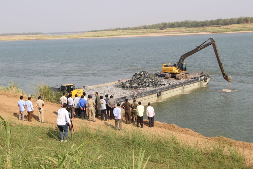 កាលពីថ្ងៃទី២ ខែមីនា ឆ្នាំ២០២៤ នៅឯការដ្ឋានកាយថ្មដែលជាកន្លែងបំពានច្បាប់ នៅចំណុចភូមិព្រៃទទឹង ឃុំឫស្សីស្រុក ស្រុកស្រីសន្ធរ ខេត្តកំពង់ចាម គេឃើញមានសាឡង់ និងរថយន្តបែនដឹកថ្មយកទៅជាក់លើគោកទីតាំងរបស់ ឧកញ៉ា ទន់ ឆៃអ៊ាង ដែលជាអ្នកប្រព្រឹត្តចាក់ថ្មចូលទន្លេពង្រីកផ្ទៃដីរបស់ខ្លួននោះ ធ្វើយ៉ាងណាឱ្យដូចដើមវិញ, មានន័យថា ពំនូកថ្មនៅបាតទន្លេក៏ត្រូវយកចេញដែរ ដើម្បីឱ្យមានលំហូរទឹកដូចពីមុន ដោយម្ចាស់ទីតាំងសន្យាថា ប្រើពេលប្រហែល ១០ថ្ងៃទៀតប៉ុណ្ណោះ។