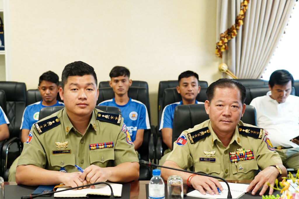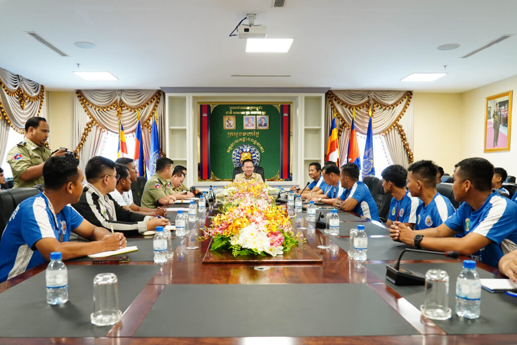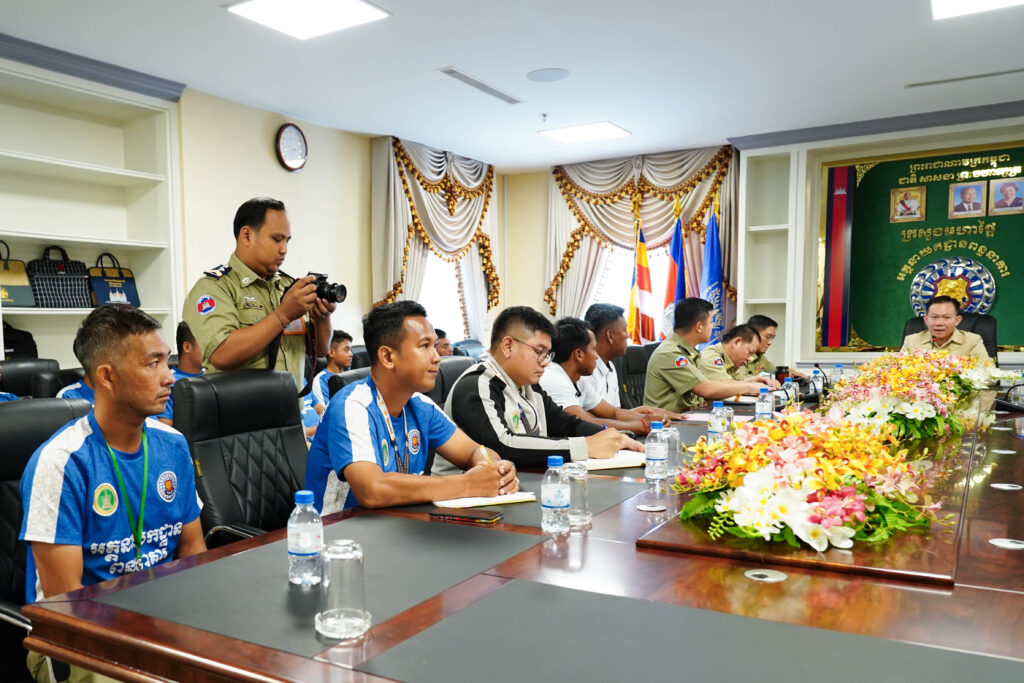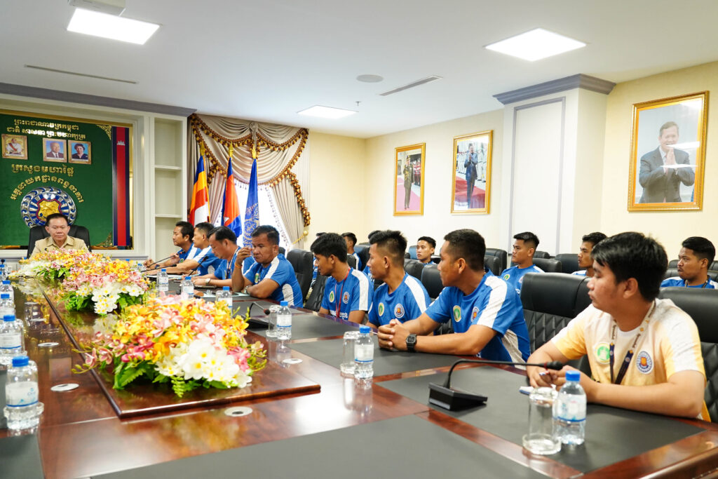 រាជធានីភ្នំពេញ ៖ ឯកឧត្តម ឧត្តមអគ្គានុរក្ស.១ ឈន សាណាត អគ្គនាយក នៃអគ្គនាយកដ្ឋានពន្ធនាគារ អញ្ជើញជួបសំណេះសំណាលជាមួយក្រុមបាល់ទាត់អគ្គនាយកដ្ឋានពន្ធនាគារចំនួន២៨រូប រសៀលថ្ងៃទី៤ ខែមីនា ឆ្នាំ២០២៤ នៅសាលប្រជុំ៤២០ នៃទីស្តីការក្រសួងមហាផ្ទៃ៕