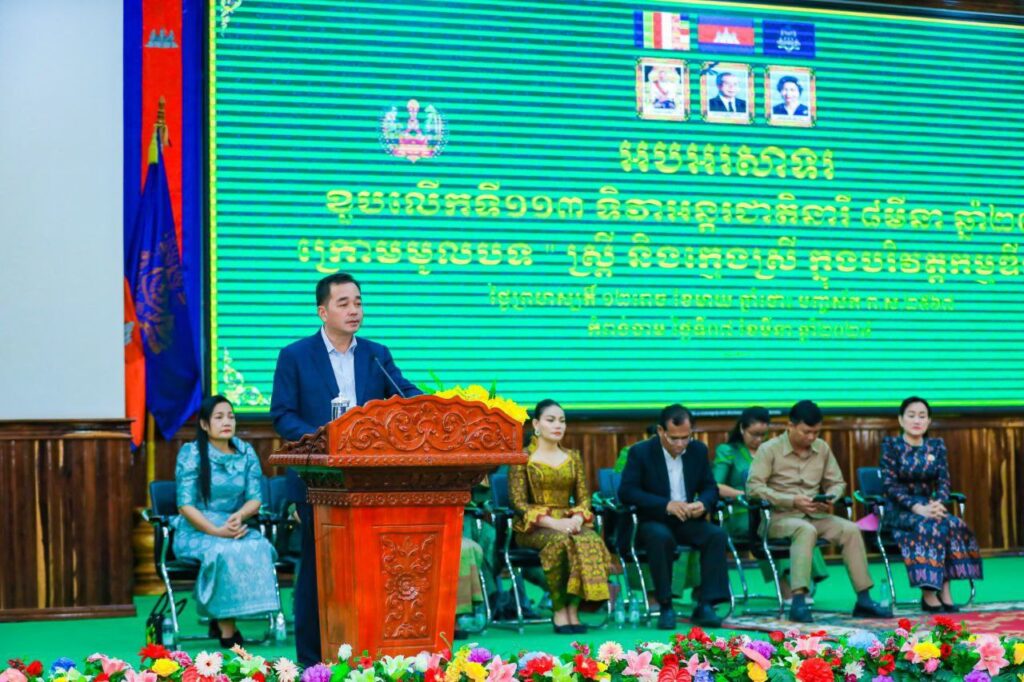 ឯកឧត្តមអភិបាលខេត្តមមានប្រសាសន៍ដោយគូសបញ្ជាក់ថា: ក្នុងនាមក្រុមប្រឹក្សាខេត្ត គណៈអភិបាលខេត្តនិងក្នុងនាមរូបលោកផ្ទាល់សូមអបអរសាទរចំពោះការរៀបចំទិវាអន្តរជាតិនារី៨មីនានេះឡើងជាព្រឹត្តិការណ៍សកល ដែលមហាសន្និបាតអង្គការសហប្រជាជាតិបានប្រកាសទិវារបស់អង្គការសហប្រជាជាតិ ស្ដីពីសិទ្ធិស្ត្រីនិងសន្តិភាពពិភពលោកនាឆ្នាំ១៩៧៧។ជារៀងរាល់ឆ្នាំព្រះរាជាណាចក្រកម្ពុជាក៏ដូចជាបណ្ដាប្រទេសជាសមាជិកអង្គការសហប្រជាជាតិបានរៀបចំយុទ្ធនាការទិវាអន្តរជាតិនារី៨មីនា ដើម្បីលើកកម្ពស់ការតស៊ូទាមទារសិទ្ធស្មើគ្នាសេរីភាព និងឆ្លុះបញ្ចាំងអំពីវឌ្ឍនភាពសមិទ្ធិផលបញ្ហាប្រឈមការប្ដេជ្ញាចិត្ត និងវិធានការជាវិជ្ជមាននានានៅក្នុងការលើកកម្ពស់យេនឌ័រ និងបង្កើនភាពដ៏ស្ត្រីនិងក្មេងស្រីគ្រប់រូប ដើម្បីធានាបាននៅជីរភាពអនាគត ឆ្ពោះទៅរកភាពសុខដុមរមនាសម្រាប់គ្រួសារនិងសង្គមជាតិ។
