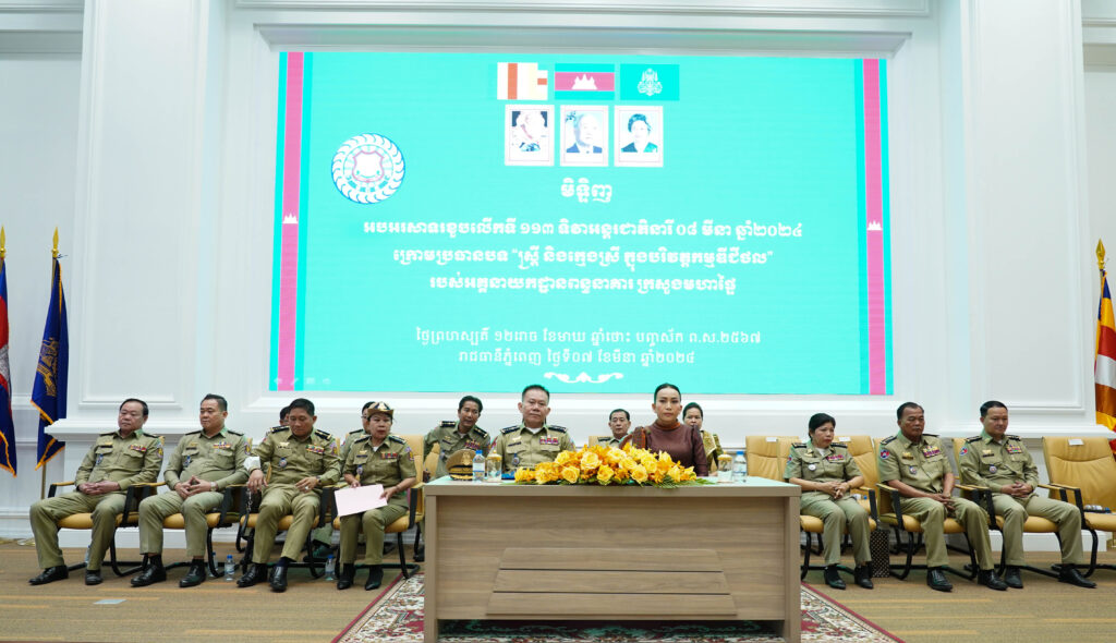 ភ្នំពេញ ៖ ឯកឧត្តម ឧត្តមអគ្គានុរក្ស.១ ឈន សាណាត អគ្គនាយក នៃអគ្គនាយកដ្ឋានពន្ធនាគារ និងលោកជំទាវ អញ្ជើញជាអធិបតីក្នុងពិធីមិទ្ទិញអន្តរជាតិនារី ៨មីនា ខួបលើកទី១១៣ ទិវាអន្តរជាតិនារី ក្រោមប្រធាន “ស្រ្តី និងក្មេងស្រី ក្នុងបរិវត្តកម្មឌីជីថល” របស់អគ្គនាយកពន្ធនាគារ ដោយមានការអញ្ជើញពីថ្នាក់ដឹកនាំ និងមន្រ្តីជាស្រ្តីសរុប៨៣រូប នាព្រឹកថ្ងៃទី៧ ខែមីនា ឆ្នាំ២០២៤ នៅសាលប្រជុំ រាជធានីភ្នំពេញ នៃទីស្តីការក្រសួងមហាផ្ទៃ៕