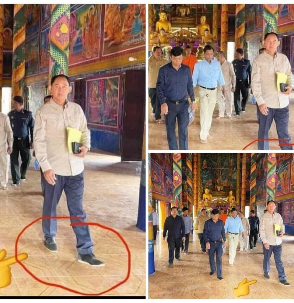 ភ្នំពេញ ៖ សម្តេចតេជោ ហ៊ុន សែន បានបង្ហាញការប្រតិកម្មចំពោះមន្ត្រីមួយរូបដែលពាក់ស្បែកជើង ចូលក្នុងព្រះវិហារដែលជាទីគោរពសក្ការៈរបស់បងប្អូនប្រជាពលរដ្ឋ។