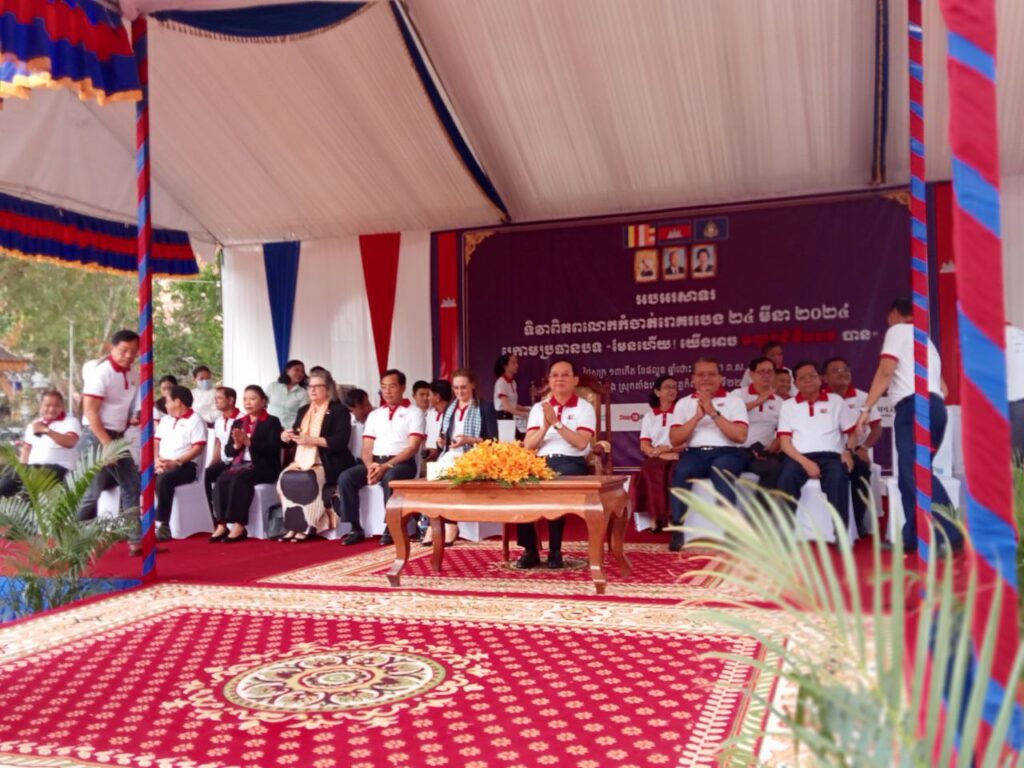 ខេត្តកំពង់ធំ៖ នៅព្រឹកថ្ងៃសុក្រ ទី២២ ខែមីនា ឆ្នាំ២០២៤ ឯកឧត្តមសាស្ដ្រាចារ្យ ឈាង រ៉ា រដ្ឋមន្ដ្រីក្រសួងសុខាភិបាល បានប្រារព្ធទិវាពិភពលោកកំចាត់រោគរបេង ២៤ មីនា ឆ្នាំ២០២៤ ក្រោមពាក្យស្លោក «មែនហើយ! យើងអាច បញ្ចប់ជំងឺរបេង បាន» “Yes ! We Can End TB” ដែលប្រព្រឹត្ដទៅវត្តគុហនគរ ឃុំពង្រ ស្រុកតាំងគោក ខេត្ដកំពង់ធំ។
