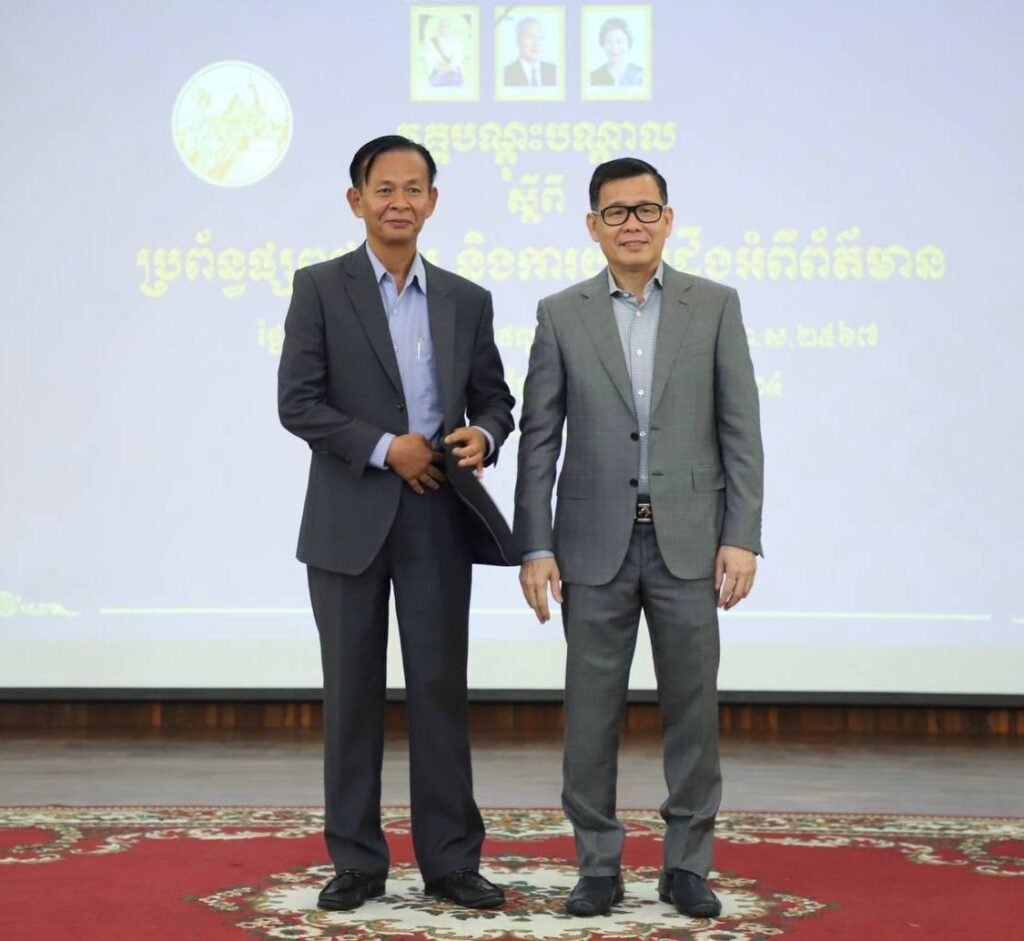 ខណៈលោកអញ្ជើញ ជាតំណាងឯកឧត្ដម ឃួង ស្រេង អភិបាលនៃគណៈអភិបាលរាជធានីភ្នំពេញ ក្នុងពិធីបើក «វគ្គបណ្តុះបណ្តាលស្តីពីប្រព័ន្ធផ្សព្វផ្សាយ និងការយល់ដឹងអំពីព័ត៌មាន»នាព្រឹកថ្ងៃទី២៨ ខែមីនា ឆ្នាំ២០២៤នេះ នៅសាលារាជធានីភ្នំពេញ ដោយមានការចូលរួមពីឯកឧត្ដមបណ្ឌិត ឆាយ សុផល រដ្ឋលេខាធិការក្រសួងព័ត៌មានផងដែរ។