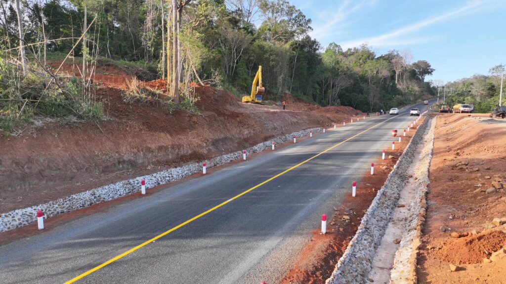 មណ្ឌលគិរី៖ ក្នុងដំណើរនិវត្តទៅកាន់រាជធានីភ្នំពេញ បន្ទាប់ពីបំពេញបេសកកម្មការងាររយៈពេល ៣ថ្ងៃ តាមបណ្តាខេត្ត នាថ្ងៃព្រហស្បតិ៍ ទី៤ ខែមេសា ឆ្នាំ ២០២៤ ឯកឧត្តម ប៉េង ពោធិ៍នា រដ្ឋមន្ត្រីក្រសួងសាធារណការ និងដឹកជញ្ជូន បានដឹកនាំគណៈប្រតិភូក្រសួង និងមន្ត្រីជំនាញបច្ចេកទេសពាក់ព័ន្ធ ចុះត្រួតពិនិត្យគុណភាពសំណង់ផ្លូវតភ្ជាប់ កំណាត់ផ្លូវជាតិលេខ៧៦ ដែលបានស្ថាបនារួចរាល់ជាស្ថាពរ បន្ទាប់ពីកំណាត់ផ្លូវប្រវែង ១៦៦ម៉ែត្រ បានបាក់ស្រុតដោយសារការរអិលបាក់ដី នៅត្រង់ចំណុចអូរងើយ ភូមិអណ្ដូងក្រឡឹង ឃុំសែនមនោរម្យ ស្រុកអូររាំង ខេត្តមណ្ឌលគិរី (ចន្លោះ PK94+080 – PK94+150) កាលពីថ្ងៃទី១ ខែសីហា ឆ្នាំ២០២៣ កន្លងទៅ។