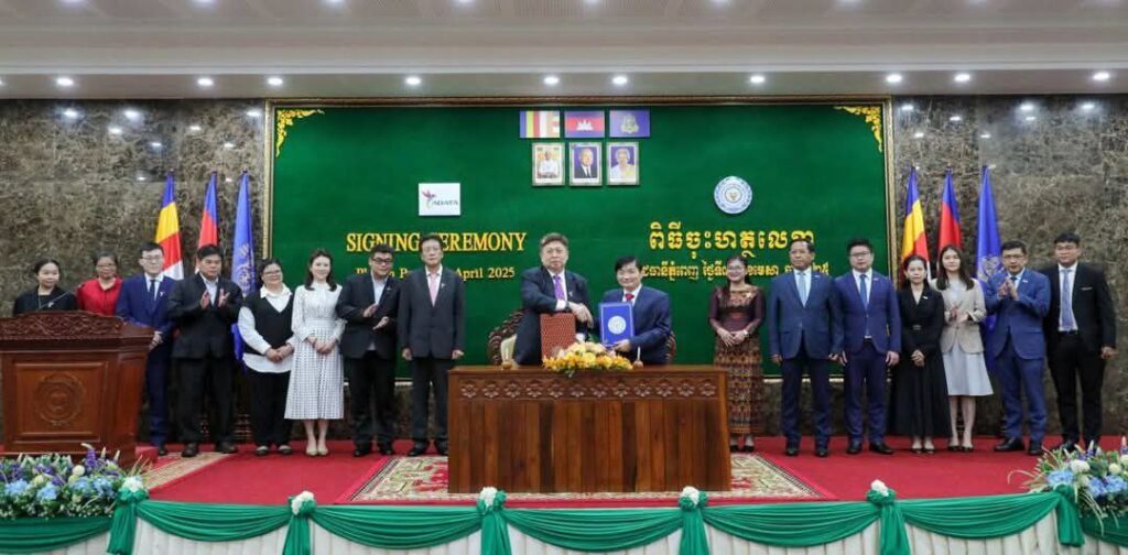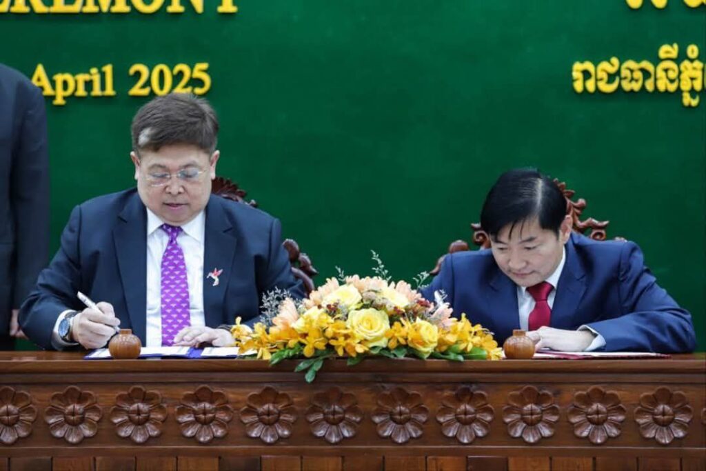 ភ្នំពេញ៖ នាព្រឹកថ្ងៃទី៣០ ខែមេសា ឆ្នាំ២០២៥ ឯកឧត្តម ហេង សួរ រដ្ឋមន្ត្រីក្រសួងការងារ និងបណ្តុះបណ្តាលវិជ្ជាជីវៈ និងលោក ឈិន ស៊ីម៉ុន (Simon Chen) ប្រធានក្រុមប្រឹក្សាភិបាលក្រុមហ៊ុន ADATA Technology Co., Ltd. បានចុះហត្ថលេខាលើអនុស្សរណៈនៃការយោគយល់គ្នារវាងក្រសួងការងារ និងបណ្ដុះបណ្ដាលវិជ្ជាជីវៈ និងក្រុមហ៊ុន ADATA Technology Co., Ltd ស្ដីពីកិច្ចសហប្រតិបត្តិការលើការអភិវឌ្ឍជំនាញ និងការបង្កើតឱកាសការងារសម្រាប់កម្ពុជា។