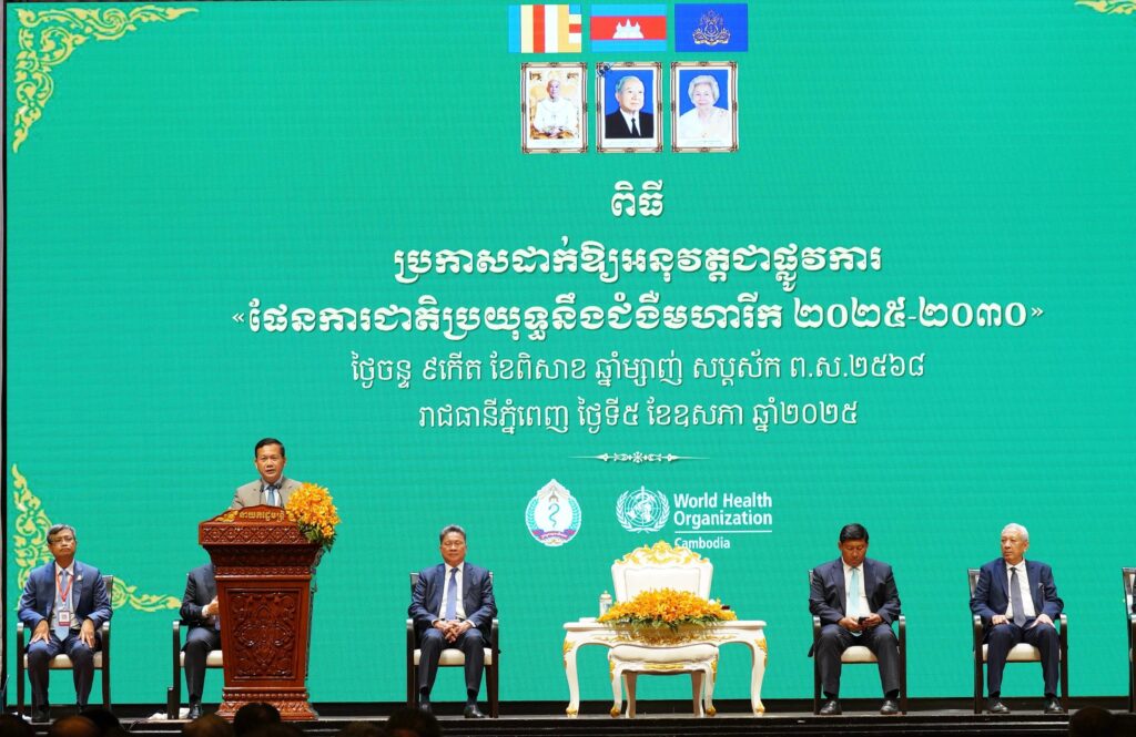 ភ្នំពេញ ៖ ក្នុងឱកាសអញ្ជើញជាអធិបតីភាពដ៏ខ្ពង់ខ្ពស់ ក្នុងពិធីប្រកាសឱ្យអនុវត្តជាផ្លូវការផែនការជាតិប្រយុទ្ធជំងឺមហារីកឆ្នាំ២០២៥-២០៣០ នាព្រឹកថ្ងៃទី០៥ ខែឧសភា ឆ្នាំ២០២៥នេះ សម្តេចមហាបវរធិបតី ហ៊ុន ម៉ាណែត នាយករដ្ឋមន្ត្រីនៃកម្ពុជា បានផ្តល់នូវអនុសាសន៍ ជំរុញឱ្យការអនុវត្តផែនការជាតិប្រយុទ្ធនឹងជំងឺមហារីក ២០២៥-២០៣០ ទទួលបានជោគជ័យប្រកបដោយប្រសិទ្ធភាព និងស័ក្តសិទ្ធភាព ដើម្បីជាឧត្តមប្រយោជន៍ដល់ប្រជាពលរដ្ឋរបស់កម្ពុជា។