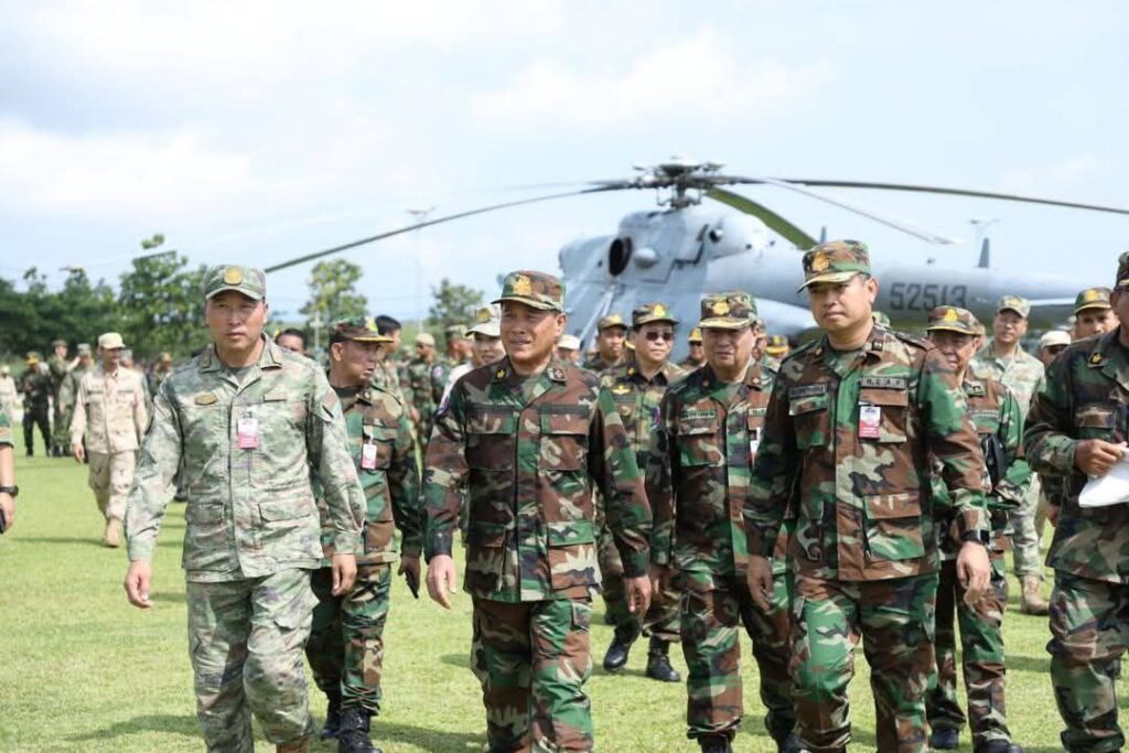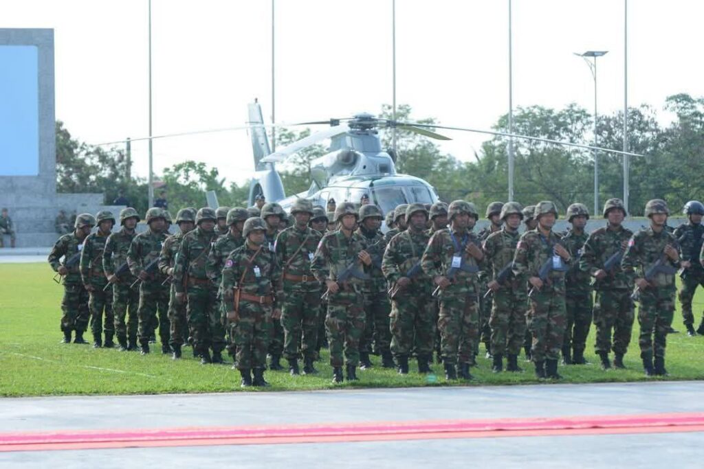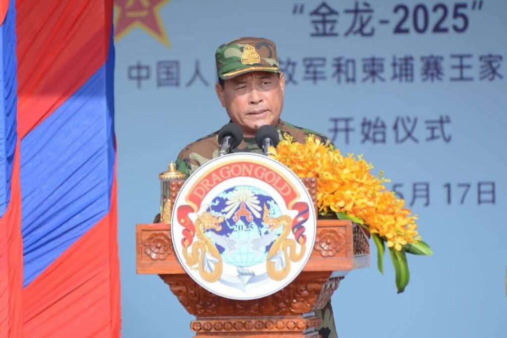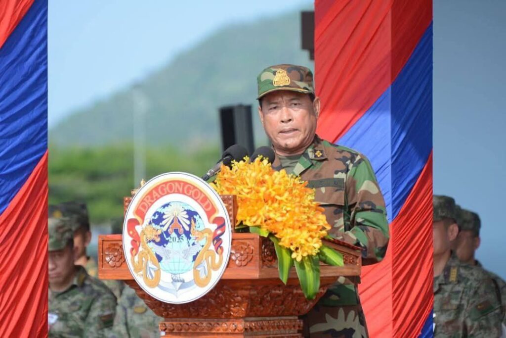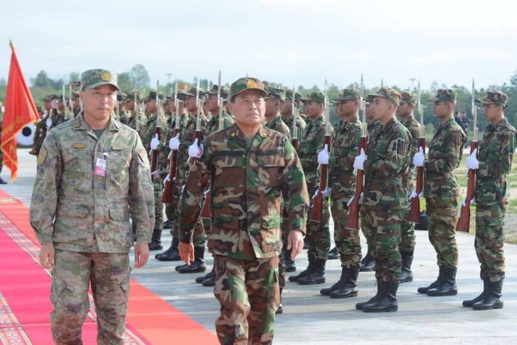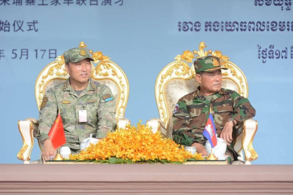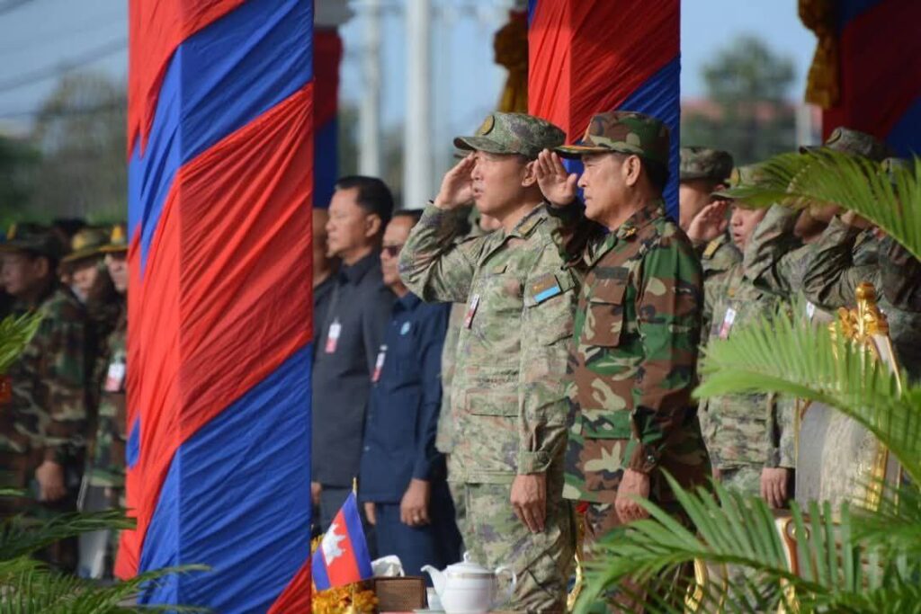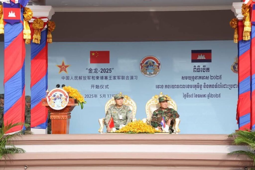 ខេត្តកំពង់ឆ្នាំង ៖ នៅថ្ងៃទី១៧ ខែឧសភា ឆ្នាំ២០២៥នេះ នាយឧត្តមសេនីយ៍ វង្ស ពិសេន អគ្គមេបញ្ជាការកងយោធពល ខេមរភូមិន្ទ និងឧត្តមសេនីយ៍ទោ លី ក្វាងឃុន ឧបការី នាយសេនាធិការ តំបន់ភូមិភាគខាងត្បូង នៃកងទ័ពរំដោះប្រជាជនចិន បានអញ្ជើញចូលរួមជាអធិបតីភាពក្នុងពិធីបើកសមយុទ្ធ «នាគមាស-២០២៥» រវាងកងទ័ពកម្ពុជា និងចិនក្រោមប្រធានបទ៖ «ប្រតិបត្តិការប្រឆាំងភេរវកម្មរួមគ្នា និងការងារសង្គ្រោះមនុស្សធម៌» មជ្ឈមណ្ឌលកងរាជអាវុធហត្ថ នៅស្រុកសាមគ្គីមានជ័យ ខេត្តកំពង់ឆ្នាំង។