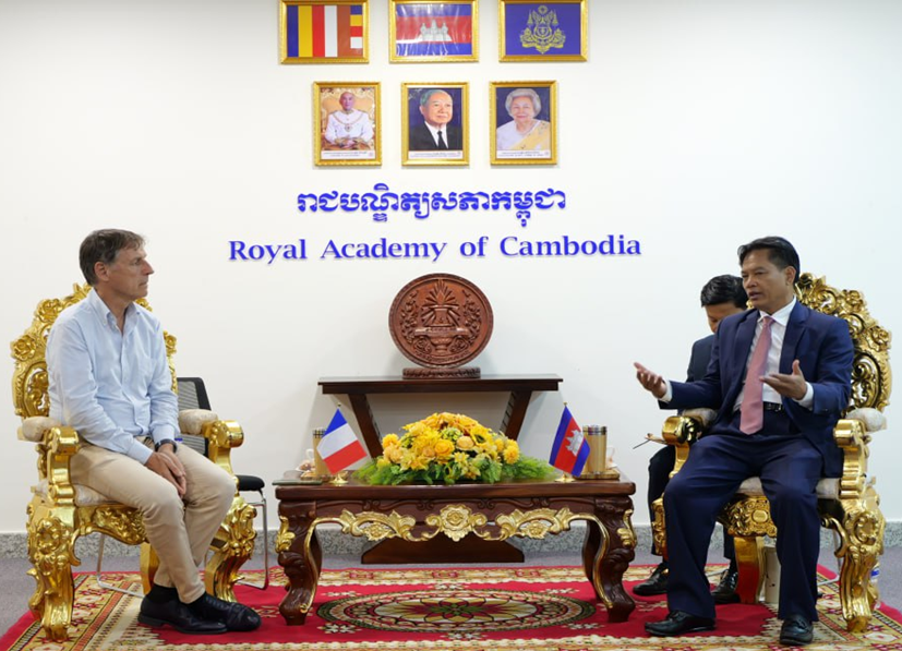 ក្នុងឱកាសជំនួបពិភាក្សាការងារជាមួយឯកឧត្ដមឯកអគ្គរដ្ឋទូតបារាំង ប្រចាំព្រះរាជាណាចក្រកម្ពុជានារសៀលនេះ ឯកឧត្ដមបណ្ឌិតសភាចារ្យ សុខ ទូច បានសម្ដែងនូវសេចក្ដីសោមនស្សចំពោះជំនួបលើកទីមួយនេះ និងបានជម្រាបជូនឯកឧត្ដមឯកអគ្គរដ្ឋទូតអំពីសមាសភាពថ្នាក់ដឹកនាំ ប្រវត្តិនៃការបង្កើត និងរចនាសម្ព័ន្ធក៏ដូចជាស្ថាប័នឧបសម្ព័ន្ធនៃរាជបណ្ឌិត្យសភាកម្ពុជា។