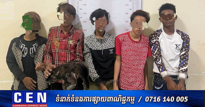 កណ្តាល ៖ ក្រុមក្មេងទំនើង ៥នាក់ ផឹកស្រាអស់អីក្លែម បានបែកគំនិតនាំគ្នាជិះម៉ូតូទៅលួចសត្វទារបស់ប្រជាពលរដ្ឋឈ្មោះ យិន សុភាព នៅសង្កាត់ស្វាយរលំ ក្រុងតាខ្មៅ នៅវេលាម៉ោង ៣:៣០នាទីទៀបភ្លឺថ្ងៃទី៥ ខែមិថុនា ឆ្នាំ២០២៥ ត្រូវសមត្ថកិច្ចក្រុងតាខ្មៅឃាត់ខ្លួន។