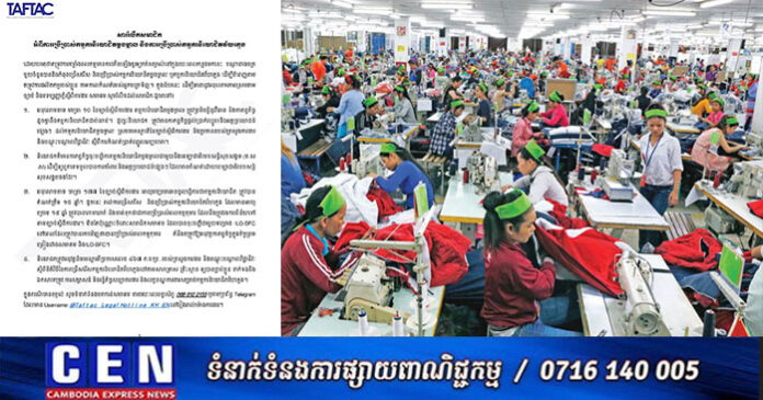 រាជធានីភ្នំពេញ ៖នៅថ្ងៃទី៣០ ខែមិថុនា ឆ្នាំ២០២៥ សមាគមវាយនភណ្ឌ សម្លៀកបំពាក់ ស្បែកជើង និងផលិតផលធ្វើដំណើរនៅកម្ពុជា បានចេញសាររំលឹកថា ដោយហេតុថាតម្រូវការកម្លាំងពលកម្មមានការកើនឡើងគួរឲ្យកត់សម្គាល់នៅក្នុងរយៈពេលកន្លងមកនេះ បណ្ដារោងចក្រ មួយចំនួនបាននិងកំពុងជ្រើសរើស និងប្រើប្រាស់កម្មករនិយោជិតម្តងម្កាល ឬកម្មករនិយោជិតវ័យក្មេង ដើម្បីបំពេញតាម តម្រូវការផលិតកម្មរបស់ខ្លួន តាមកាលកំណត់របស់អ្នកបញ្ជាទិញ។