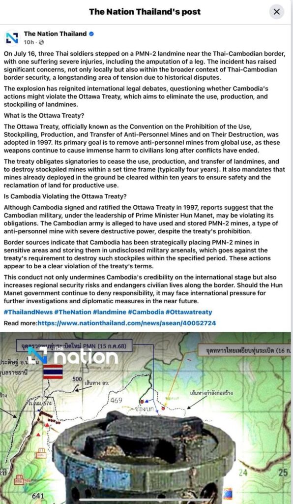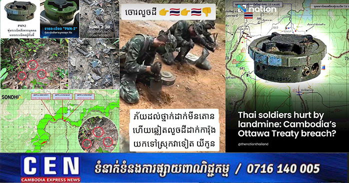 មានអ្នកតាមសួរមតិយោបល់ខ្ញុំលេីបញ្ហានេះ ខ្ញុំថាសូមពិនិត្យមេីលទិដ្ឋភាពច្បាប់នៃអនុសញ្ញាមីនអន្តរជាតិនេះ ត្រង់មាត្រាទី៥ មានចែងច្បាស់ថា បូរណភាពទឹកដីអ្នកណាអ្នកនោះទទួលខុសត្រូវ។ ជាក់ស្តែងឃេីញមានរូបភាពតាមប្រពន្ធ័សង្គមជាច្រេីននៅស្រុកសៀម បានធ្វេីការផ្សព្វផ្សាយរូបភាពសកម្មភាពទាហ៊ានសៀមសម្រុកដាក់គ្រាប់មីនថ្មីៗតាមព្រំដែនខ្មែរ-សៀម តេីរដ្ឋបាលសៀមនិងអង្គការដោះមីននៅសៀមមានចាត់វិធានការស៊េីបអង្កេតឬនៅ និងបានប្តឹងទៅថ្នាក់ដឹកនាំប្រទេសសៀមឱ្យចាត់វិធានការទប់ស្កាត់ឬនៅ? រឿងនេះករណីចង់ប្តឹងកម្ពុជាទៅUNពិតជាល្អហេីយ ដូចនេះគួរតែបបួលគ្នាដោយកាន់ដៃកម្ពុជាទៅប្តឹងនៅICJ តែម្តង ព្រោះថាICJ ជាតុលាការរបស់UNនេះស្រាប់! ។ រក្សាសិទ្ធដោយ៖សុទ្ធលី