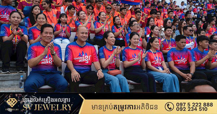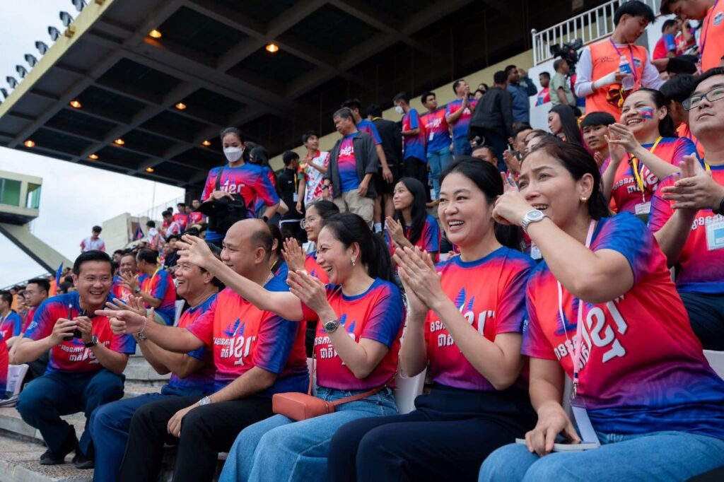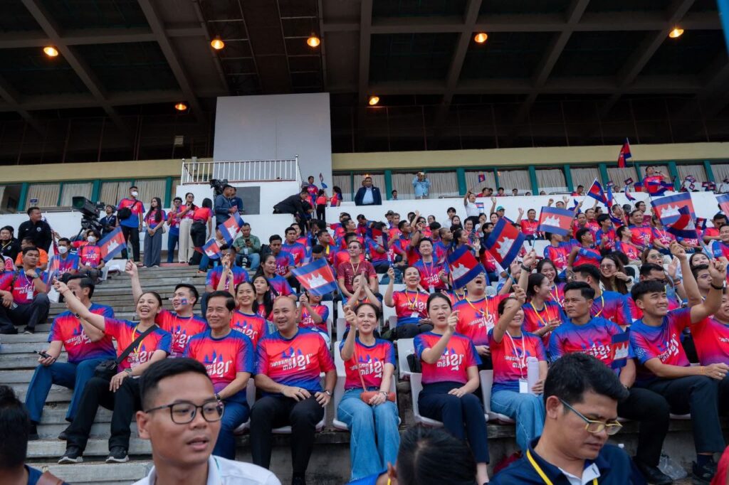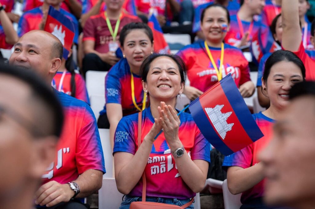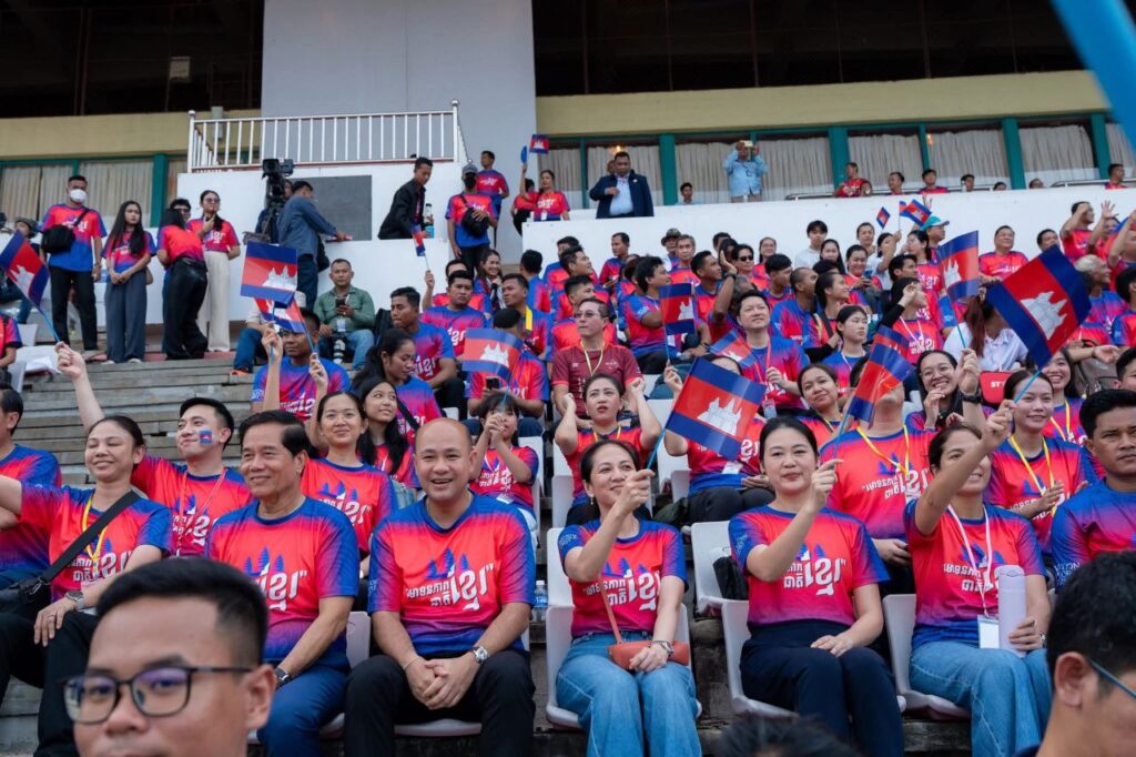 ភ្នំពេញ ៖ លោកជំទាវបណ្ឌិត ពេជ ចន្ទមុន្នី ហ៊ុនម៉ាណែត ស្រ្តីទី ១ នៃកម្ពុជា ឯកឧត្តម ហ៊ុន ម៉ានី ប្រធានសហភាពសហព័ន្ធយុវជនកម្ពុជា និងថ្នាក់ដឹកនាំជាច្រើនទៀត អញ្ជើញចូលរួមព្រឹត្តិការណ៍ចលនាមហាជនលើកទឹកចិត្តកងទ័ព និងគាំទ្ររាជរដ្ឋាភិបាល ផ្សារភ្ជាប់ជាមួយការប្រកួតបាលទាត់មិត្តភាព ដើម្បីកៀរគរមូលនិធិគាំទ្រវីរកងទ័ពជួរមុខ លើកទឹកចិត្តកងទ័ព និងគាំទ្រចំណាត់ការរាជរដ្ឋាភិបាល ក្នុងការដោះស្រាយបញ្ហាព្រំដែនជាមួយប្រទេសថៃ។