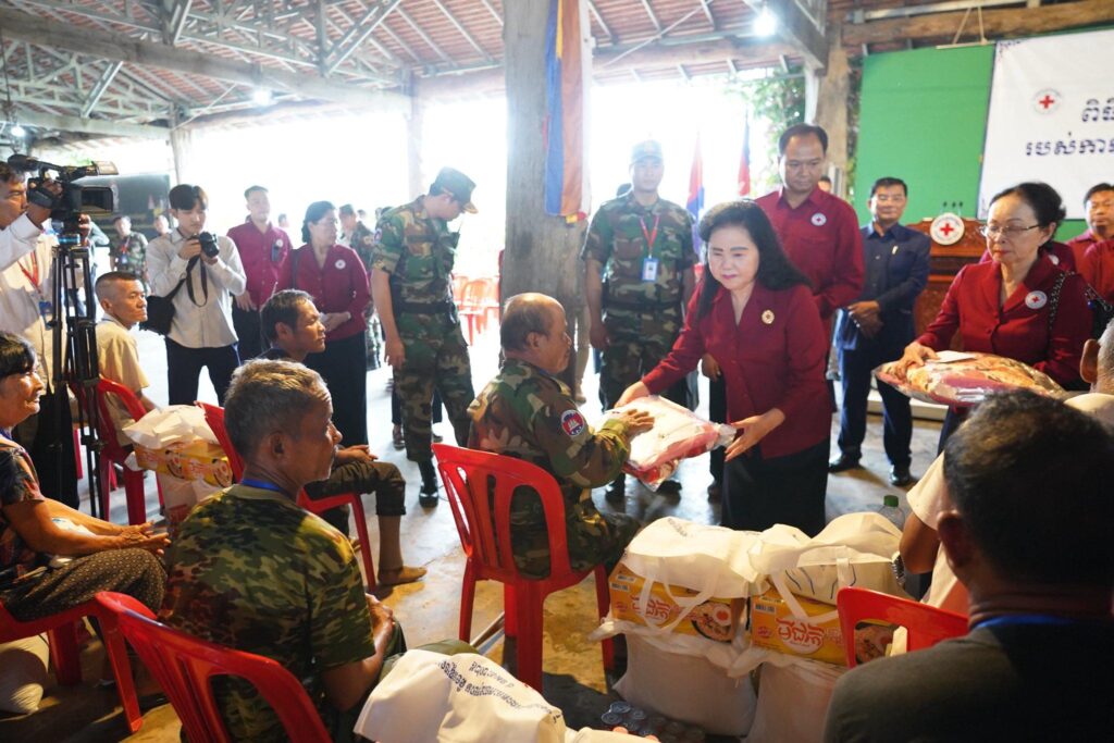 ចំពោះមុខនៃការលំបាករបស់ប្រជាពលរដ្ឋភៀសសឹកនេះ កាកបាទក្រហមកម្ពុជា ដែលជាអង្គការមនុស្សធម៌គ្មានព្រំដែន ដឹកនាំដោយសម្តេចកិត្តិព្រឹទ្ធបណ្ឌិត ប៊ុន រ៉ានី ហ៊ុនសែន បានធ្វើសកម្មភាពយ៉ាងសស្រាក់សស្រាំជាមួយរាជរដ្ឋាភិបាល និងអាជ្ញាធរពាក់ព័ន្ធ ដើម្បីចែកជូននូវស្បៀងអាហារ និងសម្ភារៈប្រើប្រាស់ផ្សេងៗជាបន្តបន្ទាប់ ចូលរួមរំលែកនូវការលំបាកទាំងឡាយ។