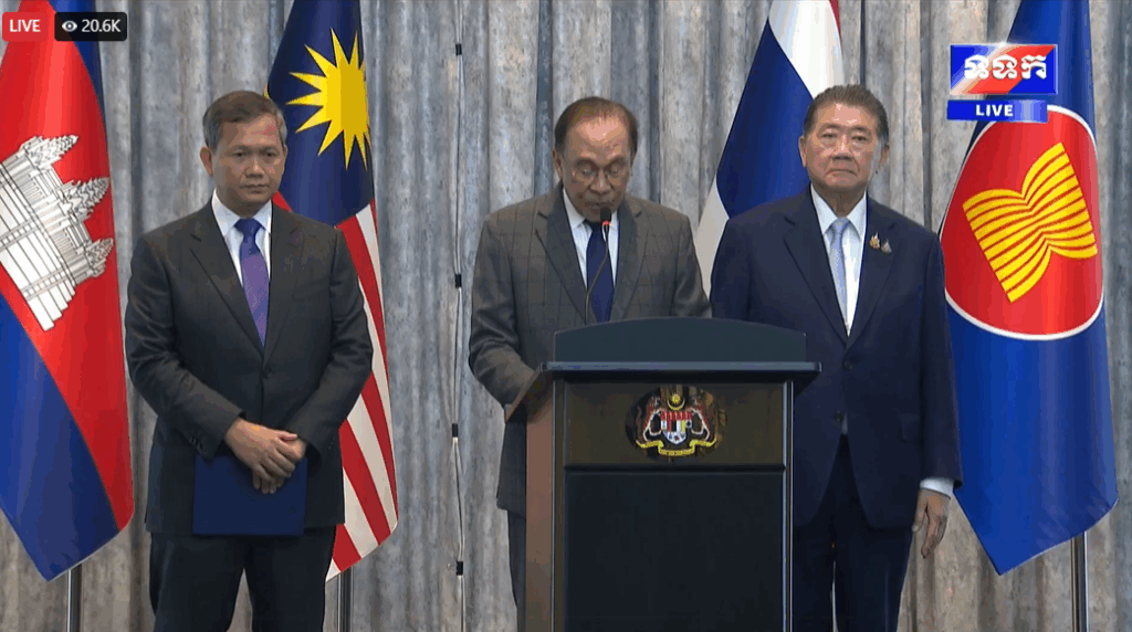 ភ្នំពេញ ៖ ឯកឧត្តម ហ៊ុន ម៉ានី ឧបនាយករដ្ឋមន្រ្តី រដ្ឋមន្រ្តីក្រសួងមុខងារសាធារណៈ នៅថ្ងៃចន្ទនេះ បានមានប្រសាសន៍អបអរសាទរនូវលទ្ធផល នៃកិច្ចចរចាឈប់បាញ់ រវាងព្រះរាជាណាចក្រកម្ពុជា និងព្រះរាជាណាចក្រថៃ ក្រោមកិច្ចសម្របសម្រួលពីម៉ាឡេស៊ី ប្រធានប្តូរវេនអាស៊ាន ដោយមានសហរដ្ឋអាមេរិកជាសហអ្នករៀបចំ និងការចូលរួមពីតំណាងសាធារណរដ្ឋប្រជាមានិតចិន។ តាមរយៈលទ្ធផលខាងលើ យើងមានជំនឿជាក់យ៉ាងមុតមាំថា សន្តិភាពនឹងត្រលប់មកវិញនៅក្នុងតំបន់តាមព្រំដែន ប្រជាពលរដ្ឋនឹងឆាប់បានវិលត្រលប់ទៅកាន់ផ្ទះសម្បែង និងប្រកបរបររកទទួលទានតាមធម្មតាវិញបាន។