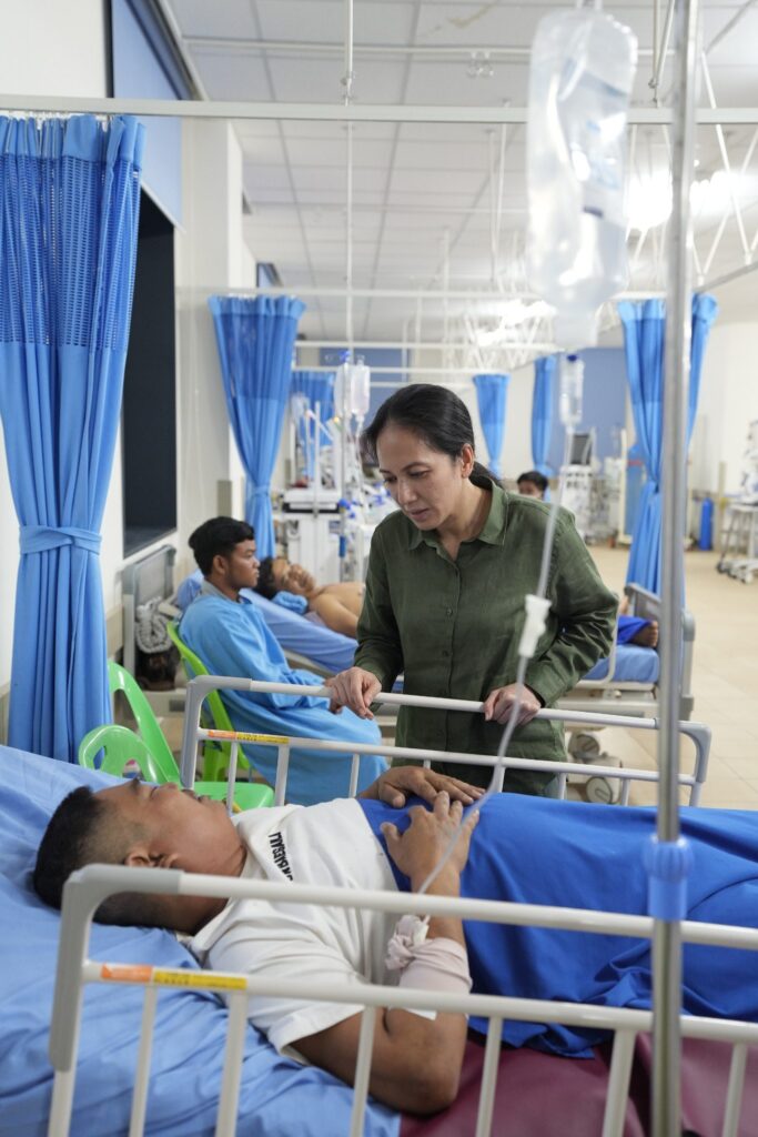 លោកជំទាវបណ្ឌិត បានថ្លែងថា “នាងខ្ញុំ និងក្រុមការងារបានចុះសួរសុខទុក្ខកងទ័ពរងរបួស ដែលសម្រាកព្យាបាលនៅមន្ទីរពេទ្យភូមិភាគទី៤, មន្ទីរពេទ្យបង្អែកក្រឡាញ់ និងមន្ទីរពេទ្យខេត្តសៀមរាប។ ក្នុងកាល:ទេសៈនេះ នាងខ្ញុំសូមកោតសរសើរដល់ កងទ័ពទាំងអស់ដែលបានលះបង់ខ្ពស់ប្រកបដោយភាពអង់អាចក្លាហាន តស៊ូតាមបន្ទាត់ព្រំដែនកម្ពុជា-ថៃ”៕ រក្សាសិទ្ធដោយ៖សុទ្ធលី