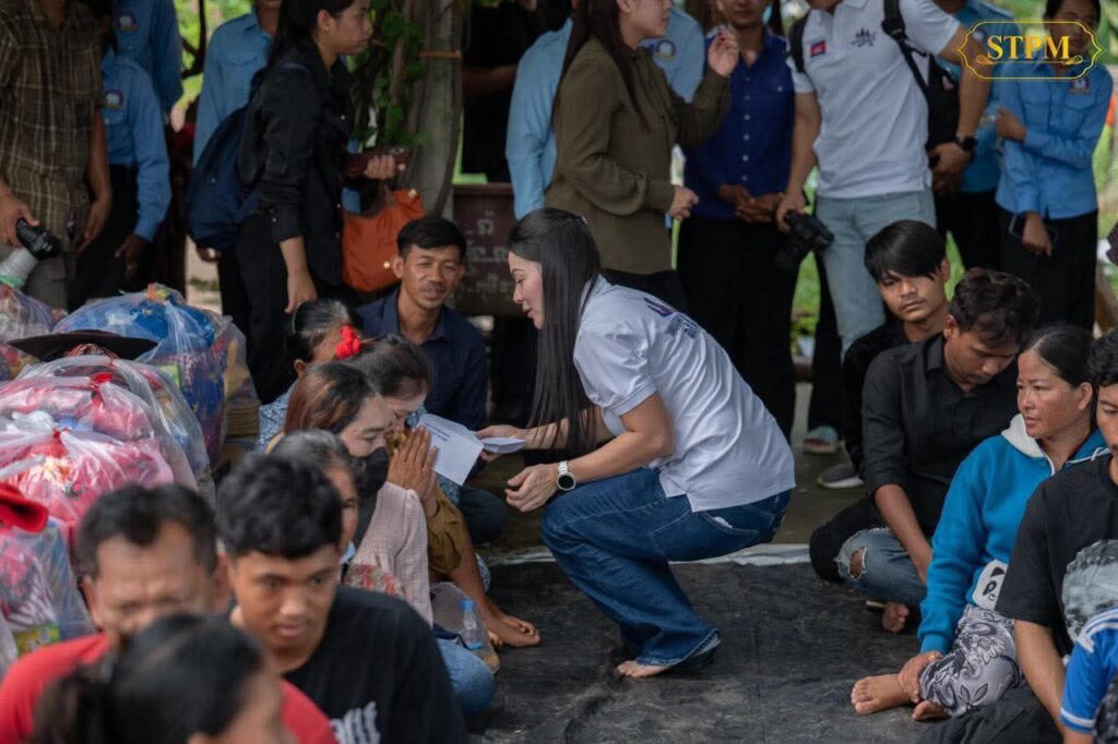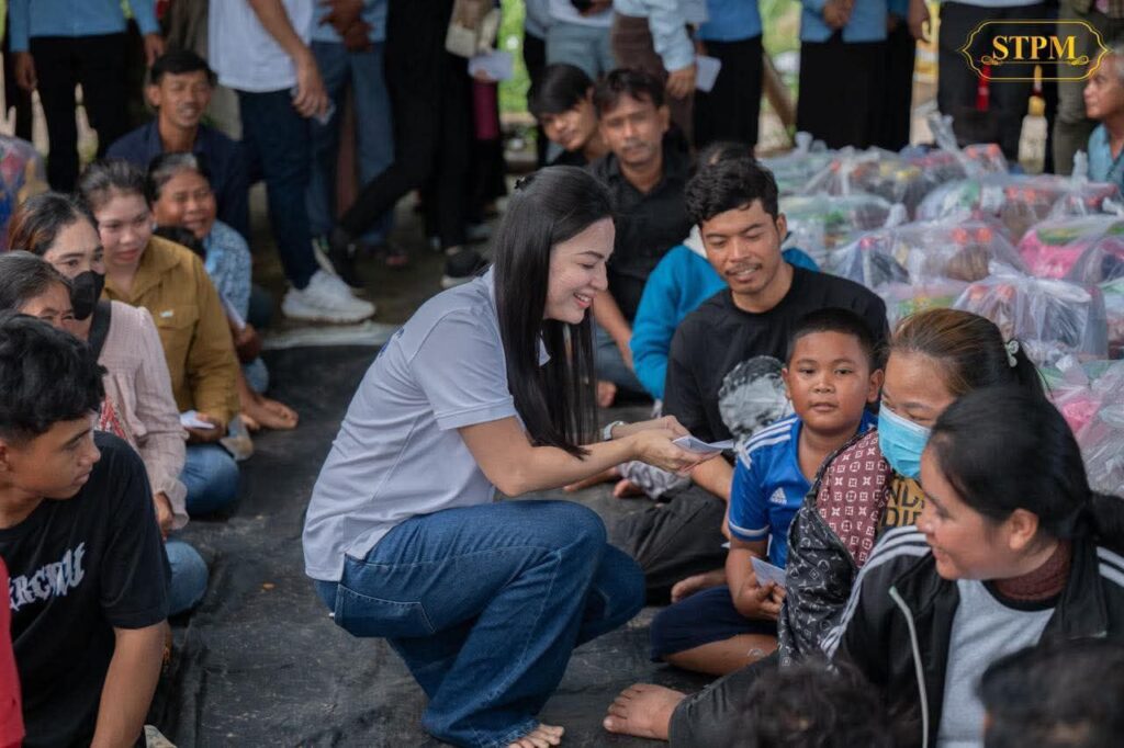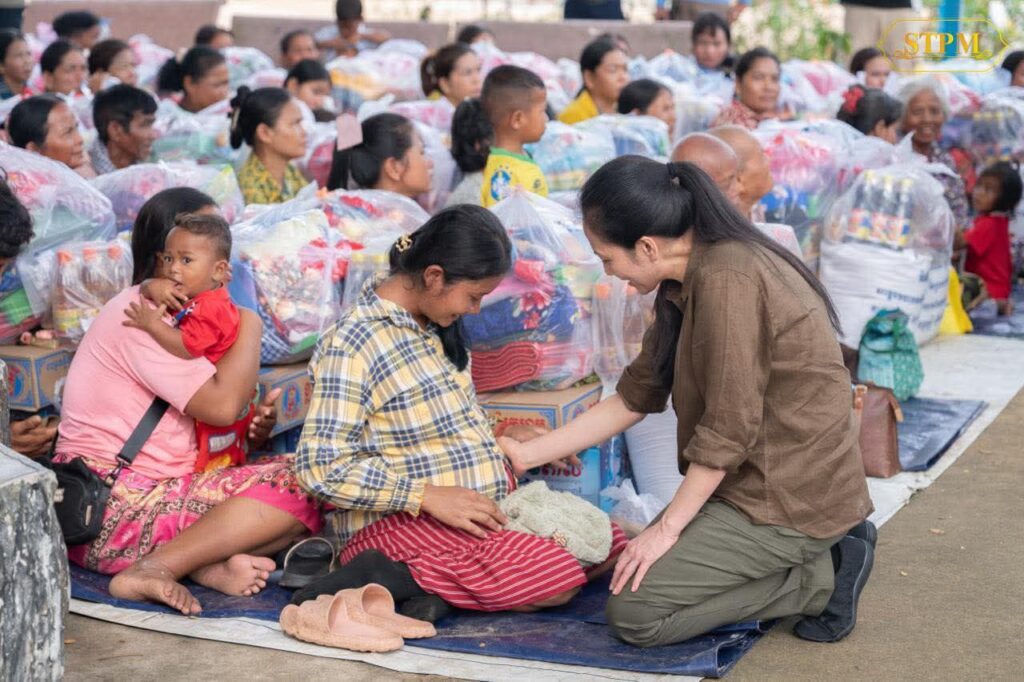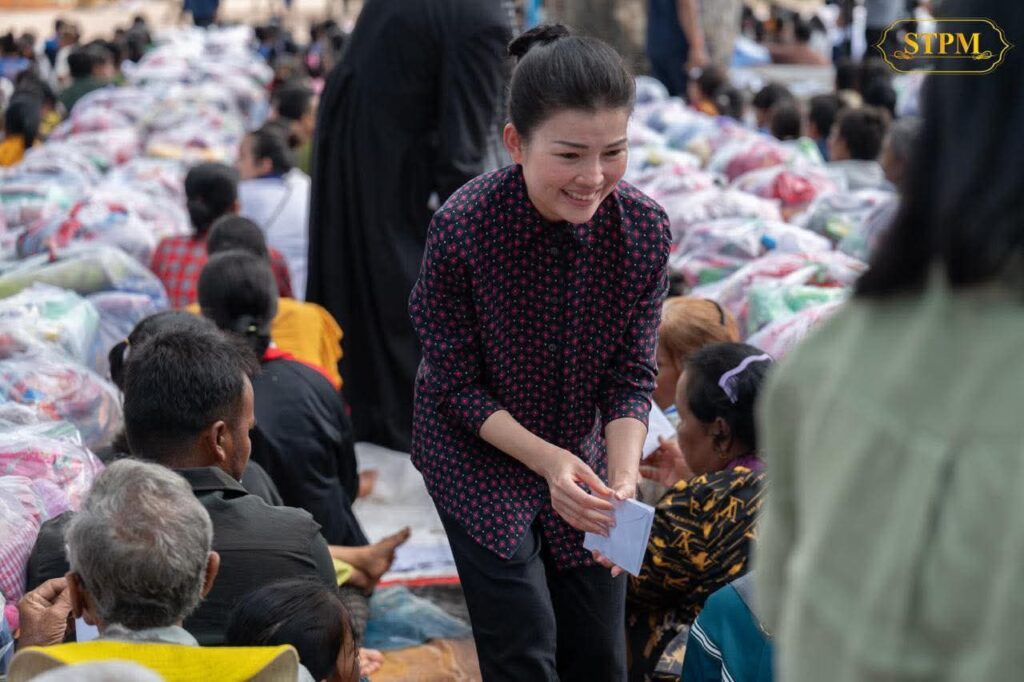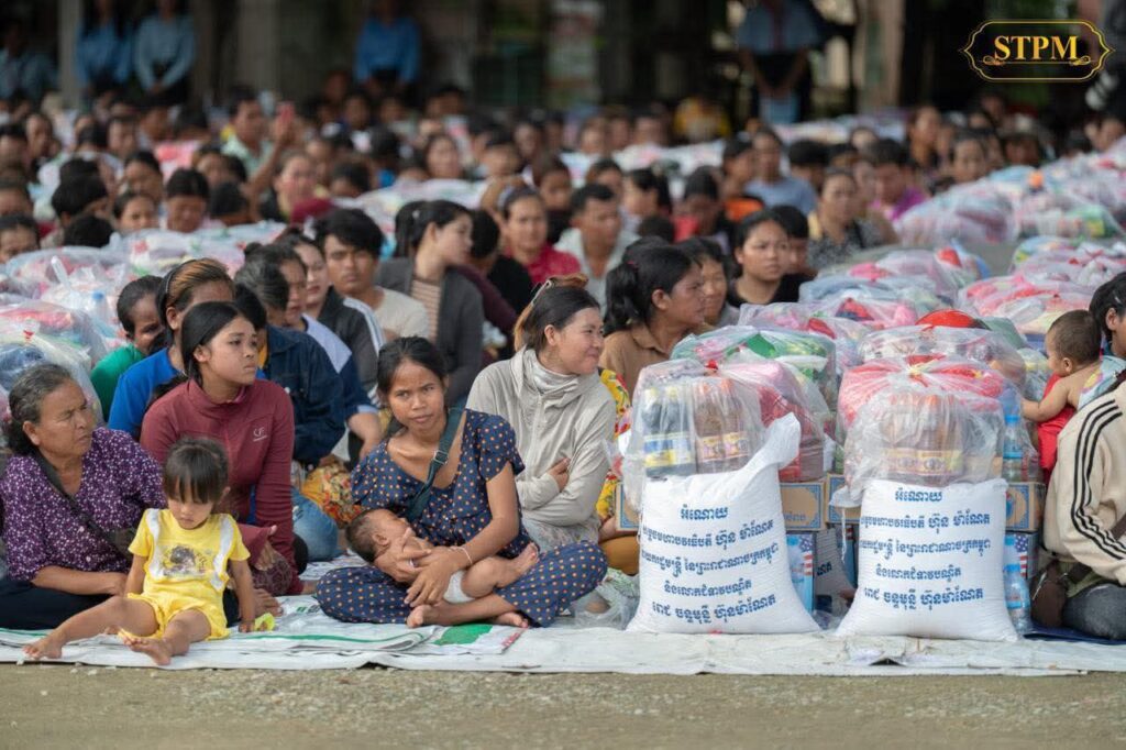 ក្នុងឱកាសនៃការអញ្ជើញជួបសួរសុខទុក្ខនេះ លោកជំទាវបណ្ឌិតបានសំណេះសំណាល និងបានផ្តល់ស្បៀងអារហារ និងរបស់របរប្រើប្រាសចាំបាច់ជាច្រើនជូន បងប្អូនប្រជាពលរដ្ឋភៀសសឹកទាំង២.៤០០គ្រួសារនូវថ្នាំពេទ្យ តង់ មុង កន្ទេល អង្រឹង ក្រម៉ា ភួយ ខ្នើយ សាប៊ូ ដែកកេស ព្រមទាំងស្បៀងអាហារ មានអង្ករ ត្រីងៀត ទឹកត្រី ទឹកស៊ីអ៊ីវ ទឹកបរិសុទ្ធ ត្រីខកំប៉ុង មី សាច់ក្រក ឆៃប៉ូវ ត្រីប្រាហើម សៀងផ្អែមជាដើមដើម្បីផ្គត់ផ្គង់បងប្អូនប្រជាពលរដ្ឋសម្រាប់ប្រើប្រាស់ និងបរិភោគដែលអាចដោះស្រាយការលំបាកនៅចំពោះមុខមួយគ្រានេះ។