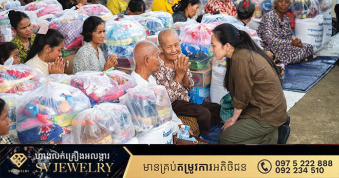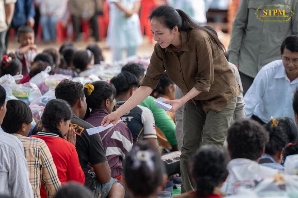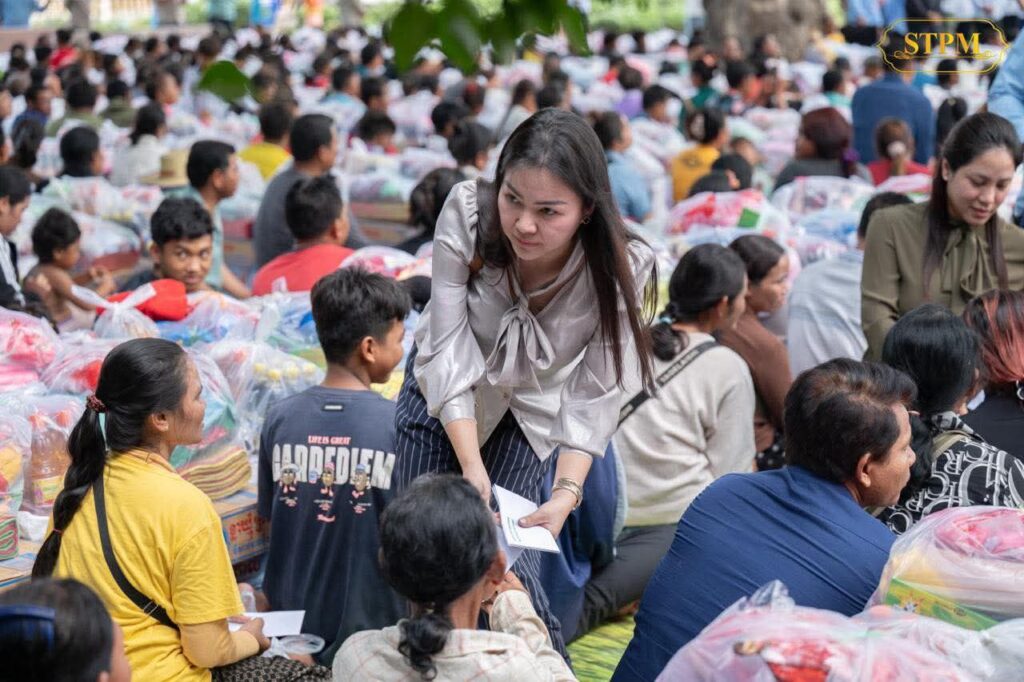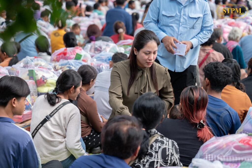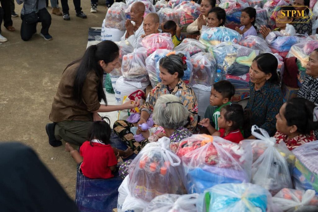 ក្នុងឱកាសនៃការអញ្ជើញជួបសួរសុខទុក្ខនេះ លោកជំទាវបណ្ឌិតបានសំណេះសំណាល និងបានផ្តល់ស្បៀងអារហារ និងរបស់របរប្រើប្រាសចាំបាច់ជាច្រើនជូន បងប្អូនប្រជាពលរដ្ឋភៀសសឹកទាំង២.៤០០គ្រួសារនូវថ្នាំពេទ្យ តង់ មុង កន្ទេល អង្រឹង ក្រម៉ា ភួយ ខ្នើយ សាប៊ូ ដែកកេស ព្រមទាំងស្បៀងអាហារ មានអង្ករ ត្រីងៀត ទឹកត្រី ទឹកស៊ីអ៊ីវ ទឹកបរិសុទ្ធ ត្រីខកំប៉ុង មី សាច់ក្រក ឆៃប៉ូវ ត្រីប្រាហើម សៀងផ្អែមជាដើមដើម្បីផ្គត់ផ្គង់បងប្អូនប្រជាពលរដ្ឋសម្រាប់ប្រើប្រាស់ និងបរិភោគដែលអាចដោះស្រាយការលំបាកនៅចំពោះមុខមួយគ្រានេះ។