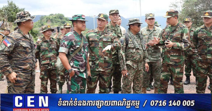 តាមការបញ្ជាក់របស់កងទ័ពកម្ពុជា ធ្វើឡើងក្នុងឱកាសដែល មន្រ្តីជាន់ខ្ពស់ក្រសួងការពារជាតិ ដឹកនាំបណ្តាអង្គទូត អនុព័ន្ធយោធាបរទេសនៅកម្ពុជា និងអ្នកពាក់ព័ន្ធទៅពិនិត្យព្រំដែនកម្ពុជា-ថៃ ដើម្បីឃ្លាំមើលទីតាំង និងសភាពការណ៍ជាក់ស្តែង ជុំវិញការអនុវត្តបទឈប់បាញ់ នៅព្រំដែនកម្ពុជា-ថៃ។