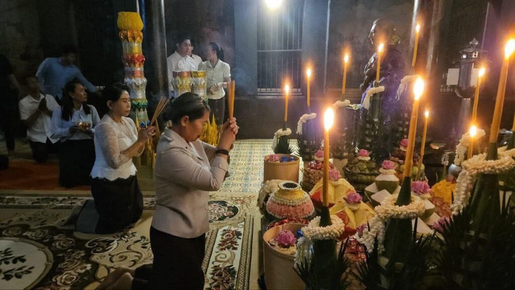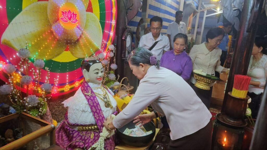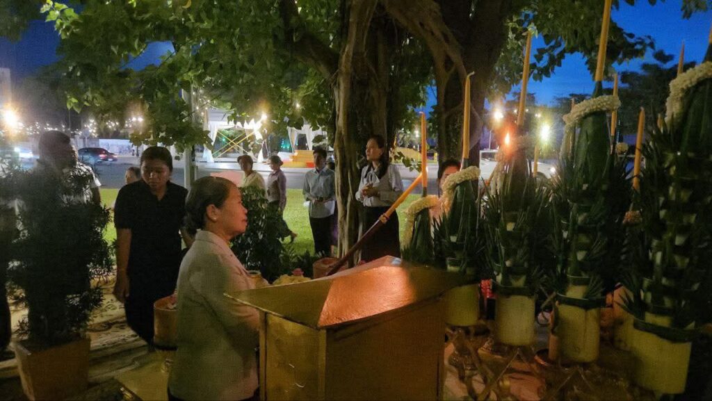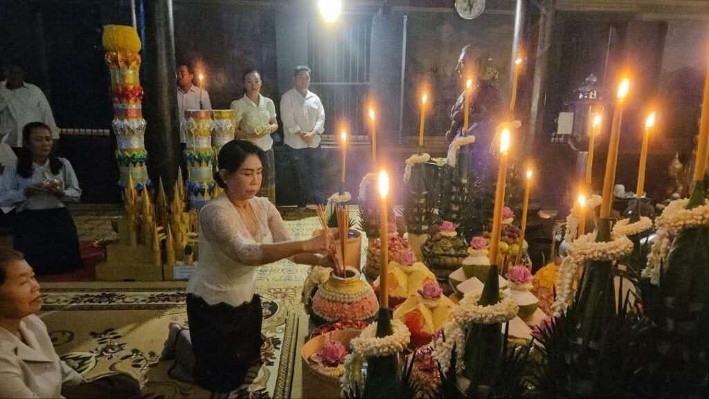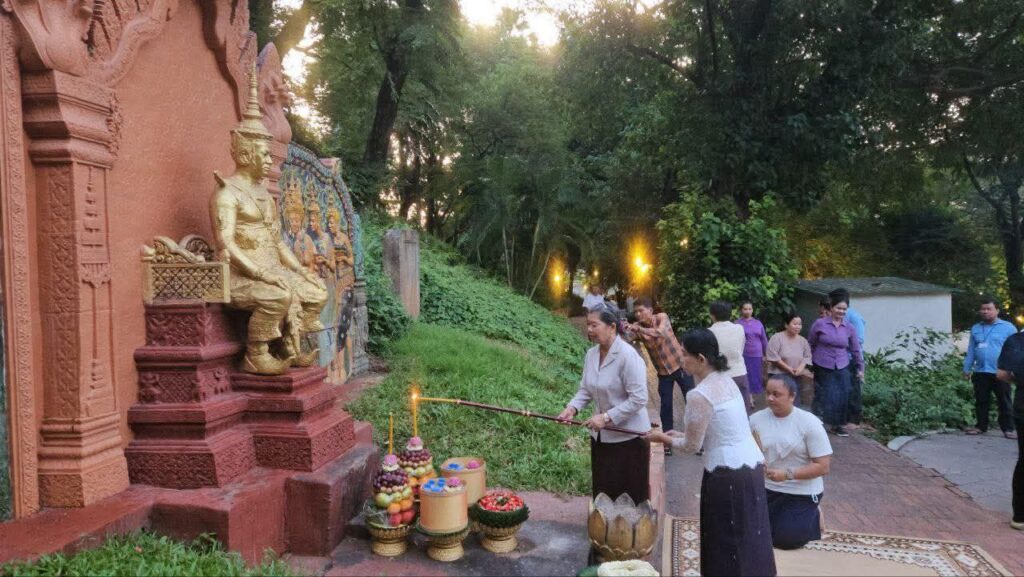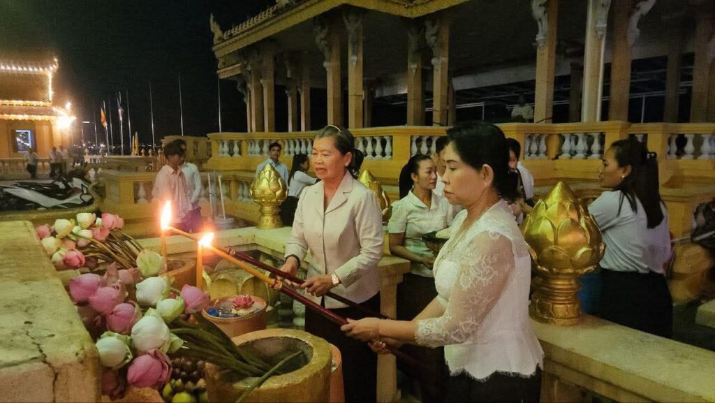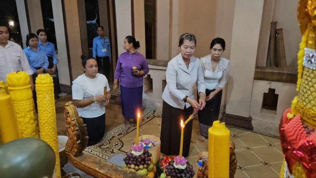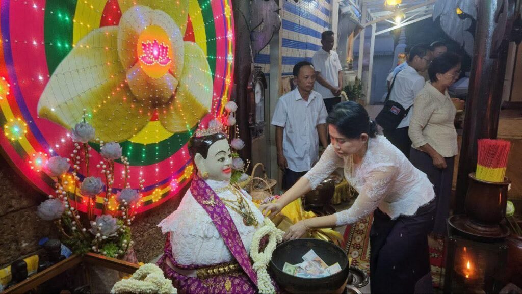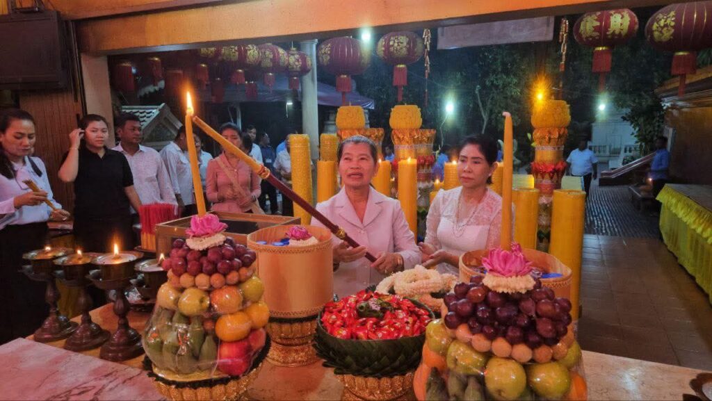 ភ្នំពេញ ៖ សម្តេចកិត្តិសង្គហបណ្ឌិត ម៉ែន សំអន ឧត្តមប្រឹក្សាផ្ទាល់ព្រះមហាក្សត្រ និងជាប្រធានក្រុមប្រឹក្សាជាតិរណសិរ្សសាមគ្គីអភិវឌ្ឍន៍មាតុភូមិកម្ពុជា បានអញ្ជើញអុជធូប ថ្វាយគ្រឿងសក្ការៈ នៅព្រះអង្គដង្កើរ ព្រះគម្លង់ លោកយាយពេញនៅវត្តភ្នំដូនពេញ រាជធានីភ្នំពេញ បួងសួងសុំសេចក្តីសុខ សេចក្តីចម្រើន ជូនពលរដ្ឋកម្ពុជា នាព្រឹកថ្ងៃអង្គារ ១១កើត ខែស្រាពណ៍ ឆ្នាំម្សាញ់ សប្តស័ក ព.ស. ២៥៦៩ ត្រូវនឹង ថ្ងៃទី៥ ខែសីហា ឆ្នាំ២០២៥។