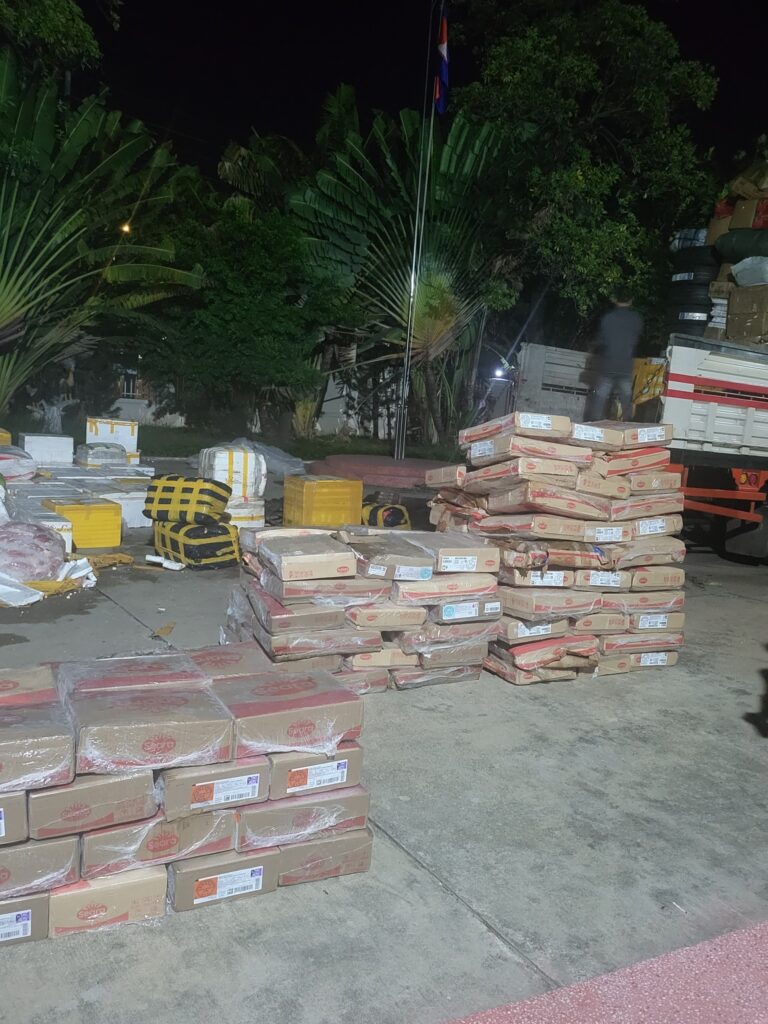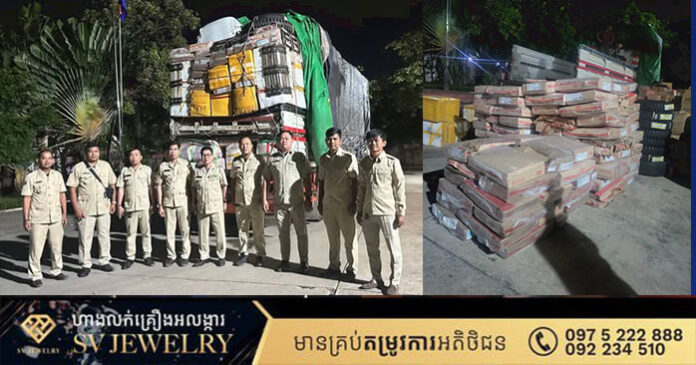 ភ្នំពេញ ៖ នៅវេលាម៉ោង២២នឹង៣៥នាទី នាថ្ងៃទី០៥សីហាឆ្នាំ២០២៥ ដោយមានការសម្របសម្រួលនីតិវិធីពីព្រះរាជអាជរង នៃអយ្យការអមសាលាដំបូងរាជធានីភ្នំពេញ ឱ្យក្រុមអន្តរាគមន៍បង្ក្រាបបទល្មើសចលនាសត្វ នៃអគ្គដ្ឋានសុខភាពសត្វ និងផលិតកម្មសត្វ ចុះឃាត់ចាប់រថយន្ត ១គ្រឿង ម៉ាកHYUNDIA ដឹកសាច់សត្វបង្កកចំនួន ៦៧៨០គីឡូក្រាម រួមមាន: ជើងមាន់, គូទមាន់, ស្លាបមាន់, សាច់ជ្រូក, ខ្លាញ់ជ្រូក, ទាមូល, សាច់គោ, សាច់មាន់កិន, សសៃជើងមាន់ ។នេះបើយោងតាមការបង្ហោះលើទំព័រហ្វេសប៊ុករបស់លោក ហ៊ុន សារ៉ាត់ អនុប្រធាននាយកដ្ឋានសុខភាពសត្វ។