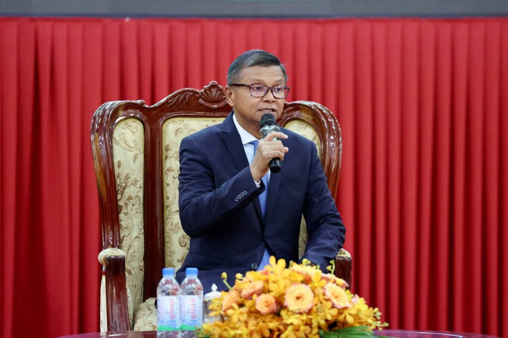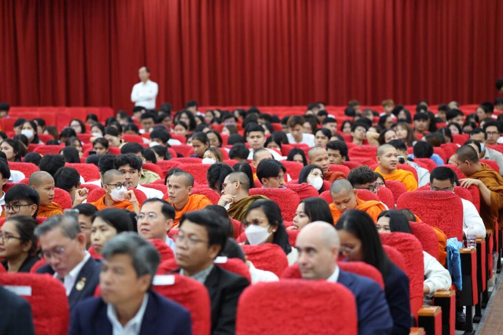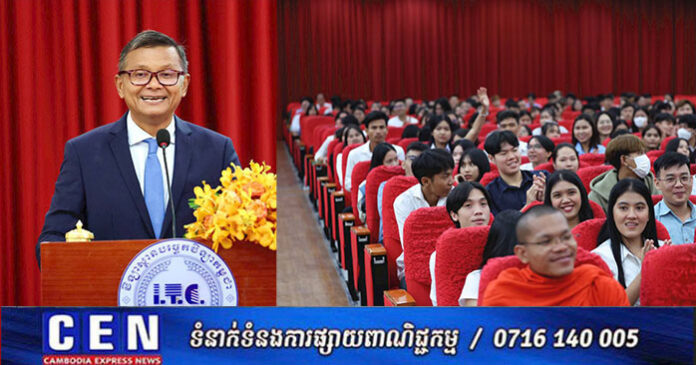 រាជធានីភ្នំពេញ៖ នារសៀលថ្ងៃទី១២ ខែសីហា ឆ្នាំ២០២៥ ឯកឧត្តមបណ្ឌិតសភាចារ្យ ហង់ជួន ណារ៉ុន ឧបនាយករដ្ឋមន្ត្រី រដ្ឋមន្ត្រីក្រសួងអប់រំ យុវជន និងកីឡា បានទទួលជួបសំណេះសំណាលជាមួយនិស្សិតកម្ពុជាវិលត្រឡប់ពីប្រទេសថៃ នៅវិទ្យាស្ថានបច្ចេកទេសកម្ពុជា ដោយមានការចូលរួមពីសំណាក់ ឯកឧត្តម លោកជំទាវ ថ្នាក់ដឹកនាំក្រសួងអប់រំ យុវជន និងកីឡា និងមន្ត្រីពាក់ព័ន្ធក្រោមឱវាទ ឯកឧត្តម លោកជំទាវ សាកលវិទ្យាធិការ លោក លោកស្រី គណៈគ្រប់គ្រង គ្រឹះស្ថានឧត្តមសិក្សាសាធារណៈ និងឯកជន អ្នកអាណាព្យាបាល និងនិស្សិត។