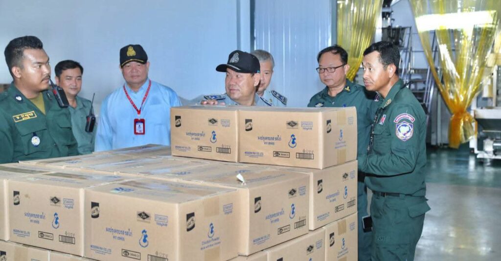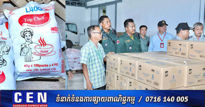 រាជធានីភ្នំពេញ ៖ នៅព្រឹកថ្ងៃទី១១ ខែសីហា ឆ្នាំ២០២៥ នេះ កម្លាំងជំនាញការិយាល័យប្រឆាំងបទល្មើសកម្មសិទ្ធិបញ្ញា នៃនាយកដ្ឋាននគរបាលប្រឆាំងបទល្មើសសេដ្ឋកិច្ច ក្រោមការសម្របសម្រួលនីតិវិធីផ្ទាល់ពីលោក ប្លង់ សុផល ព្រះរាជអាជ្ញារង នៃអយ្យការអមសាលាដំបូងរាជធានីភ្នំពេញ និងមានការចូលរួមពីមន្ត្រី ក.ប.ប សាខារាជធានីភ្នំពេញ និងអាជ្ញាធរមូលដ្ឋាន បានចុះបង្ក្រាបទីតាំងសិប្បកម្មមួយកន្លែងស្ថិតនៅសង្កាត់ភ្លើងឆេះរទះ ខណ្ឌកំបូល រាជធានីភ្នំពេញ ដែលបាន និងកំពុង វេចខ្ចប់ ប៊ីចេង និងម្សៅស៊ុបម៉ាក ឆេហ្វ 55 ខុសច្បាប់ ដោយម្ចាស់សិប្បកម្ម ឈ្មោះ អ៊ីវ សារិន បាននាំចូល ប៊ីចេង និងម្សៅស៊ុប គ្មានម៉ាកយីហោពីប្រទេសចិន រួចលួចលាក់ធ្វើការវេចខ្ចប់ដាក់ម៉ាក ឆេហ្វ 55 ប្រើប្រាស់ស្លាកសញ្ញាគុណភាព បាកូដ និងអាសយដ្ឋានផលិតនៅប្រទេសថៃ រួចធ្វើការលក់ចែកចាយស្ទើរគ្រប់ទីផ្សារក្នុងប្រទេសកម្ពុជា ដោយក្លែងបន្លំដល់អ្នកប្រើប្រាស់ថាជាផលិតផលរបស់ប្រទេសថៃ ។