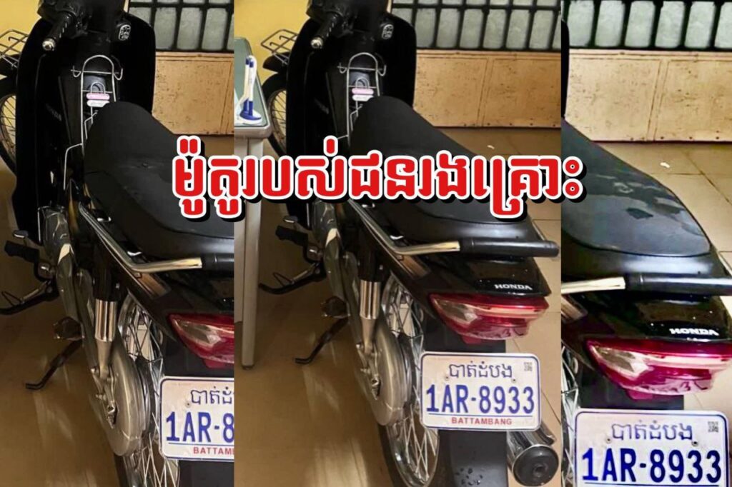 បាត់ដំបង ៖ នៅថ្ងៃទី១២ ខែសីហា ឆ្នាំ២០២៥ ក្រោមការចង្អុលទិសរបស់លោកឧត្តមសេនីយ៍ ទោ ដាញ់ អេងប៊ុនចាន់ ស្នងការនៃស្នងការដ្ឋាននគរបាលខេត្តបាត់ដំបង លោកវរសេនីយ៍ ឯក ពេជ្រសា រ៉ែន អធិការនគរបាលក្រុងបាត់ដំបង ស្រាវជ្រាវនិងឃាត់ខ្លួន ជនសង័្សយឈ្មោះចែម ដារ៉ាភេទ ប្រុស អាយុ ៥១ឆ្នាំមានទីលំនៅភូមិស្រែជា ឃុំស្រែជា ស្រុកកំពង់ត្រាច ខេត្តកំពតដកហូតបាន៖ ម៉ូតូម៉ាកហុងដាឌ្រីម ស៊េរីឆ្នាំ២០២២ ពណ៌ខ្មៅ ពាក់ផ្លាកលេខបាត់ដំបង 1AR-8933 កូនសោរម៉ូតូ ចំនួន០២គ្រាប់
