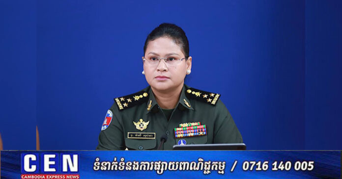 លោកជំទាវ ឧត្តមសេនីយ៍ឯក ម៉ាលី សុជាតា អនុរដ្ឋលេខាធិការ និងជាអ្នកនាំពាក្យក្រសួងការពារជាតិកម្ពុជាបានថ្លែងបញ្ជាក់ថា សភាពការណ៍នៅតាមខ្សែបន្ទាត់ព្រំដែនក្នុងយោធភូមិភាគទី៤ និងទី៥ រួមមាន ខេត្តព្រះវិហារ ឧត្តរមានជ័យ និងខេត្តបន្ទាយមានជ័យគឺមានសភាពស្ងប់ស្ងាត់ តែកងកម្លាំងរបស់យើងគឺស្ថិតក្នុងការប្រុងប្រយ័ត្នខ្ពស់ជានិច្ចក្នុងការបំពេញតួនាទីរបស់ខ្លួនយ៉ាងខ្ជាប់ខ្ជួន ដើម្បីការពារអធិបតេយ្យភាព និងបូរណភាពទឹកដីឱ្យខាងតែបាន។