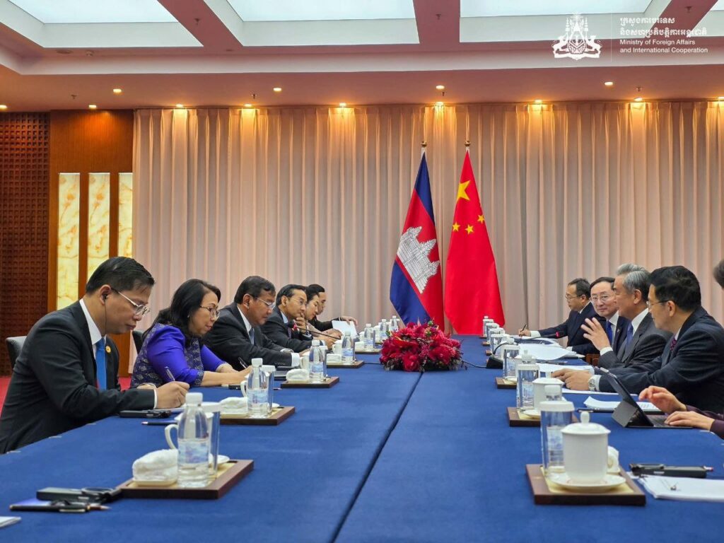 ប្រទេសចិន ៖ នៅព្រឹកថ្ងៃទី១៤ ខែសីហា ឆ្នាំ២០២៥ ឯកឧត្តម ប្រាក់ សុខុន ឧបនាយករដ្ឋមន្ត្រី រដ្ឋមន្ត្រីការបរទេស និងសហប្រតិបត្តិការអន្តរជាតិ បានអញ្ជើញជួបពិភាក្សាការងារទ្វេភាគីជាមួយ ឯកឧត្តម វ៉ាង យី រដ្ឋមន្រ្តីការបរទេស នៃសាធារណរដ្ឋប្រជាមានិតចិន ក្នុងអំឡុងពេលកិច្ចប្រជុំរដ្ឋមន្ត្រីការបរទេសនៃកិច្ចសហប្រតិបត្តិការមេគង្គ-ឡានឆាង លើកទី១០ នៅទីក្រុងអាននីង ខេត្តយូណាន ប្រទេសចិន ។