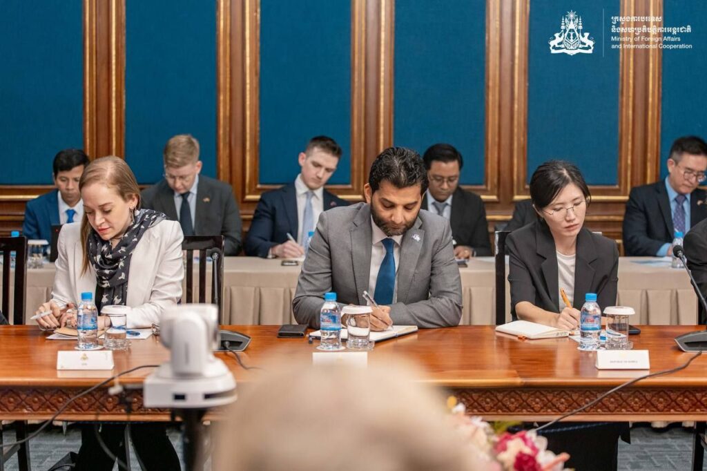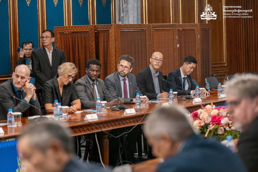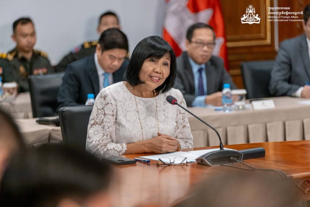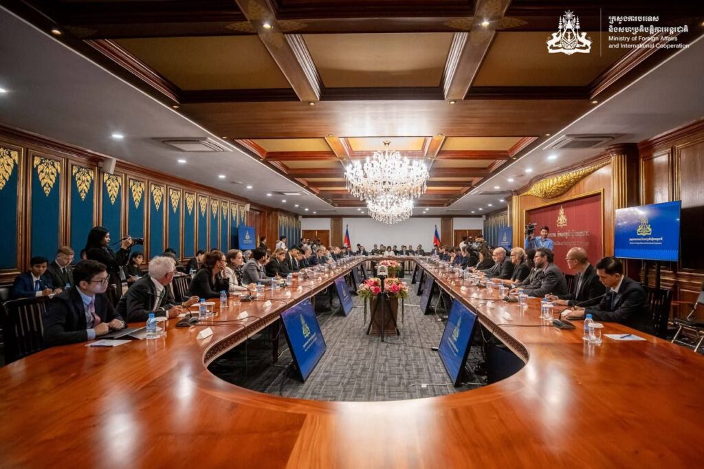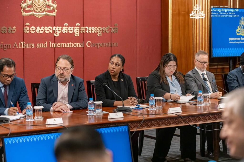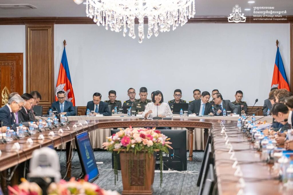 ភ្នំពេញ : នៅរសៀលថ្ងៃទី១៥ ខែសីហា ឆ្នាំ២០២៥ នាទីស្តីការក្រសួងការបរទេស និងសហប្រតិបត្តិការអន្តរជាតិ លោកជំទាវ អ៊ាត សោភា រដ្ឋមន្ត្រីស្តីទីក្រសួងការបរទេស និងសហប្រតិបត្តិការអន្តរជាតិ បានដឹកនាំការធ្វើបទបង្ហាញអំពីការវិវត្តថ្មីៗនៃសភាពការណ៍ព្រំដែនកម្ពុជា-ថៃ ដល់សមាជិកអង្គទូតបរទេស និងទីភ្នាក់ងារអង្គការសហប្រជាជាតិប្រចាំកម្ពុជាជាច្រើនរូបដែលបានចូលរួមស្តាប់។ បទបង្ហាញបានលើកពី (១) ខ្លឹមសារនៃកិច្ចប្រជុំពិសេសស្តីពីស្ថានការណ៍បច្ចុប្បន្នរវាងកម្ពុជា និងថៃ ដែលសម្រេចបានការឯកភាពលើបទឈប់បាញ់ នៅថ្ងៃទី២៨កក្កដា ឆ្នាំ២០២៥ នៅទីក្រុងពូត្រាយៃយ៉ាប្រទេសម៉ាឡេស៊ី (២)លទ្ធផលល្អប្រសើរនៃកិច្ចប្រជុំវិសាមញ្ញនៃគណៈកម្មាធិការព្រំដែនទូទៅកម្ពុជា-ថៃ (GBC) កាលពីថ្ងៃទី០៧ ខែសីហា ឆ្នាំ២០២៥ នៅប្រទេសម៉ាឡេស៊ី (៣)ការព្រួយបារម្ភរបស់កម្ពុជាលើកំណើនហានិភ័យចំពោះបទឈប់បាញ់ដ៏សែនផុយស្រួយ ដោយសារតែមានការអនុវត្តសកម្មភាពជាច្រើនរួមទាំង ការរាយបន្លាលួស និងការចលនាកម្លាំង ផ្ទុយនឹងលក្ខខណ្ឌបទឈប់បាញ់ ។