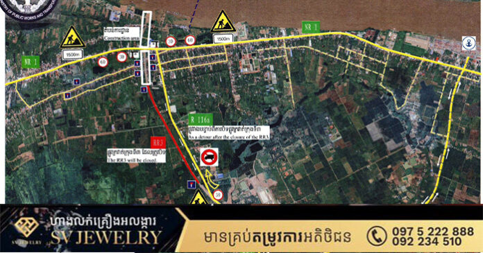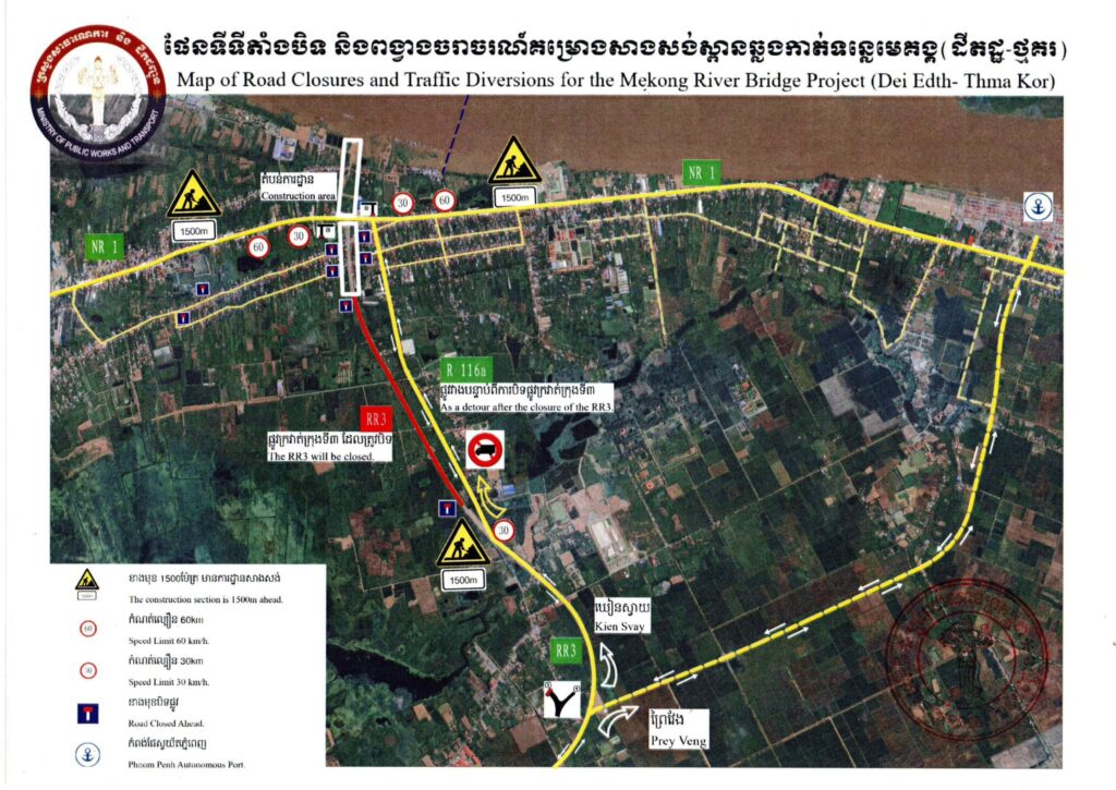 ក្នុងន័យនេះ ដើម្បីឱ្យគម្រោងសាងសង់ស្ពានខាងលើប្រព្រឹត្តទៅដោយរលូន ក្រសួងសាធារណការ និង ដឹកជញ្ជូន បានរៀបចំដើម្បីបង្វែរទិសចរាចរណ៍ជាបណ្តោះអាសន្ន ចេញពីទីតាំងខាងលើ តាមផែនទីបង្ហាញ(ដូចមានភ្ជាប់មកជាមួយ) និងកំណត់ប្រភេទយានយន្តប្រើប្រាស់ផ្លូវដូចខាងក្រោម៖