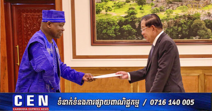 ភ្នំពេញ ៖ នៅវិមានព្រឹទ្ធសភា ព្រឹកថ្ងៃព្រហស្បតិ៍ ១២កើត ខែភទ្របទ ឆ្នាំម្សាញ់ សប្តស័ក ពុទ្ធសករាជ ២៥៦៩ ត្រូវនឹងថ្ងៃទី៤ ខែកញ្ញា ឆ្នាំ២០២៥ សម្តេចអគ្គមហាសេនាបតីតេជោ ហ៊ុន សែន ប្រមុខរដ្ឋស្តីទីនៃព្រះរាជាណាចក្រកម្ពុជា អនុញ្ញាតឲ្យ ឯកឧត្តម Daouda Bitie ឯកអគ្គរដ្ឋទូតវិសាមញ្ញ និងពេញសមត្ថភាព សាធារណរដ្ឋប្រជាមានិតបួគីណាហ្វាសូ ប្រចាំកម្ពុជា ចូលជួប និងប្រគល់សារតាំង។