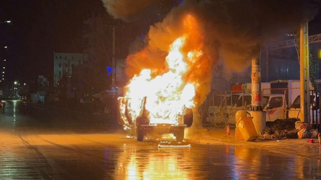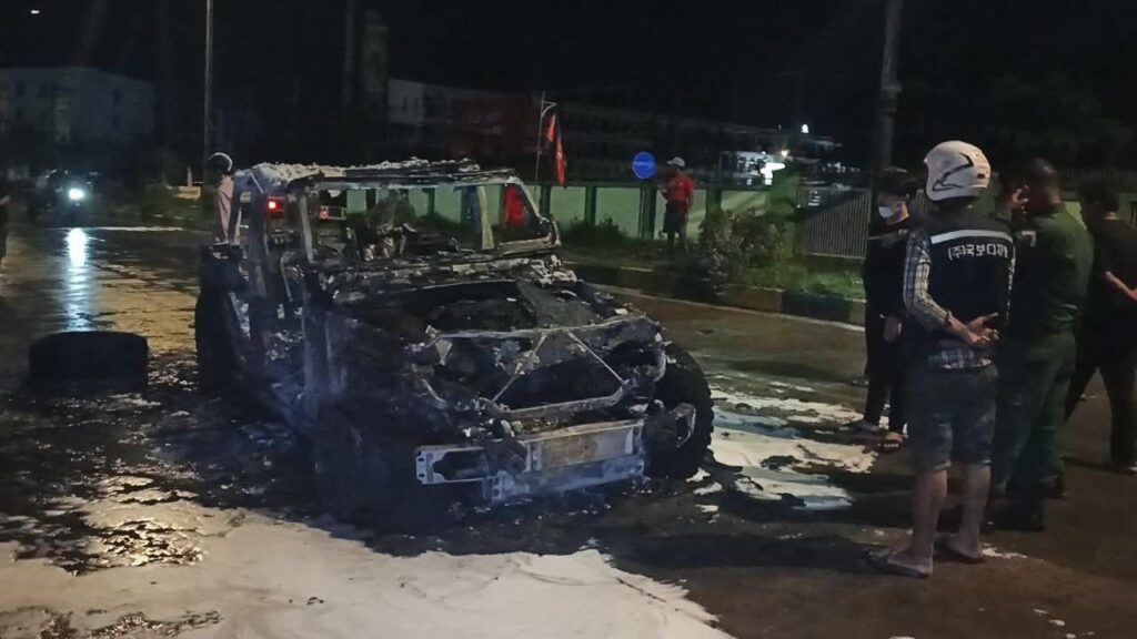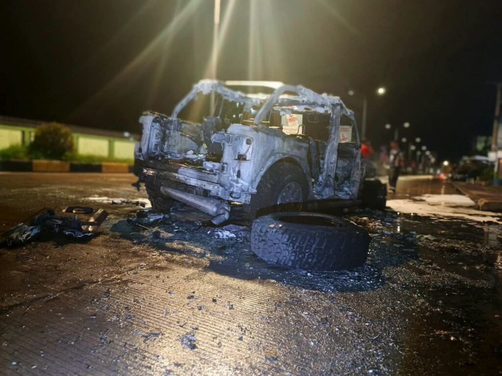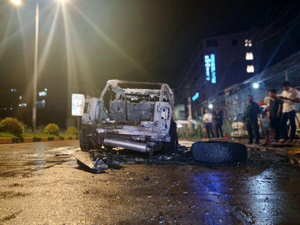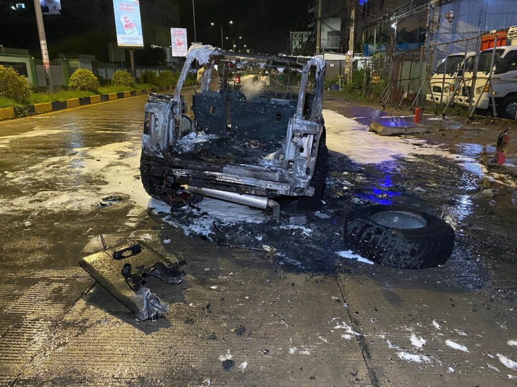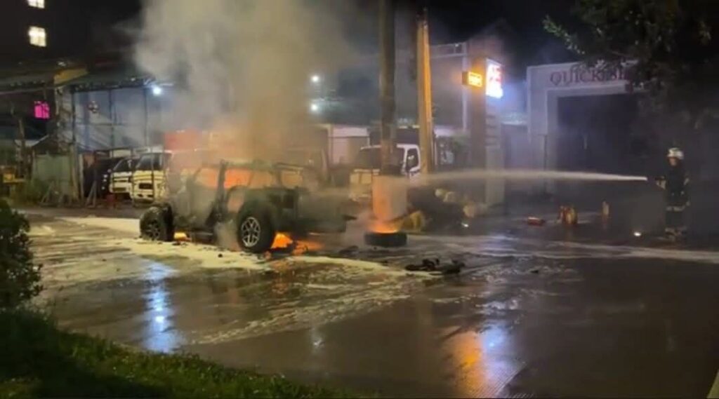 រថយន្ដស៊េរីទំនើប Jeep ពាក់ផ្លាកលេខ កម្ពុជា RATHA.76 ត្រូវបានអគ្គិភ័យឆាបឆេះអស់ទាំងស្រុក បន្ទាប់ពីបេីកបុកជាមួយរថយន្ដ TOYOTA Prius ពាក់ផ្លាកលេខ ភ្នំពេញ 2VE-3962 រួចបន្តទៅបុកម៉ូតូ HONDA VARIO ពាក់ផ្លាកលេខ ភ្នំពេញ 1KM-7137 បណ្ដាលឲ្យរងការខូចខាត រួចរថយន្ដក៏មានការឆ្លងចរន្តអគ្គិសនីបង្កចេញជាអណ្ដាតភ្លើងឆាបឆេះយ៉ាងសន្ធោសន្ធៅ។ ហេតុការណ៍នេះបានបង្កឲ្យមានការភ្ញាក់ផ្អើលកាលពីវេលាម៉ោង២:៣០នាទី រំលងអធ្រាត្រឈានចូល ថ្ងៃទី២៥ ខែកញ្ញា ឆ្នាំ២០២៥ ស្ថិតតាមបណ្ដោយផ្លូវណតប្រ៊ីត សង្កាត់អូរបែកក្អម ខណ្ឌសែនសុខ រាជធានីភ្នំពេញ។