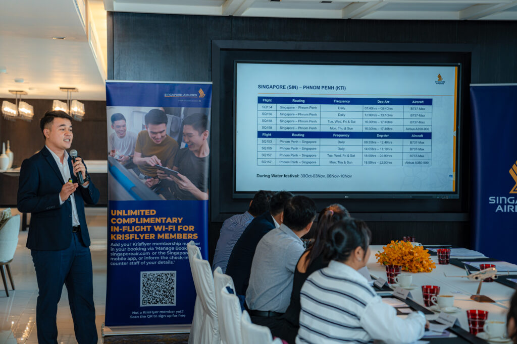 ក្រុមហ៊ុន Singapore Airlines (SIA) នៅតែបន្តពង្រឹងជំហឧស្សាហកម្មអាកាសចរណ៍របស់ខ្លួនឥតឈប់ឈរ ដោយផ្ដោតសំខាន់ទៅលើគោលការណ៍ ៣ ធំៗ និងផាសុកភាពខ្ពស់បំផុតសម្រាប់ភ្ញៀវ ៖ ១. សេវាកម្មល្អឥតខ្ចោះ (Service Excellence) , ២. ផលិតផលឈានមុខ (Product Leadership) , និង ៣. ពង្រីកបណ្ដាញតំណភ្ជាប់ (Network Connectivity) ខណៈនេះ ក៏បានពង្រីកជើងហោះហើរ ២១ដង ក្នុងមួយសប្តាហ៍ ភ្នំពេញ-សិង្ហបុរី និង ១៤ដង ក្នុងមួយសប្តាហ៍ សៀមរាប-សិង្ហបុរី ហើយតាមរយៈទីស្នាក់ការកណ្ដាលនៅសិង្ហបុរី អតិថិជនដែលហោះហើរពីកម្ពុជា អាចភ្ជាប់ដំណើរទៅកាន់គោលដៅជាង ១២៥ទីតាំង ទូទាំងពិភពលោក។