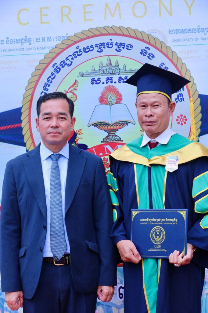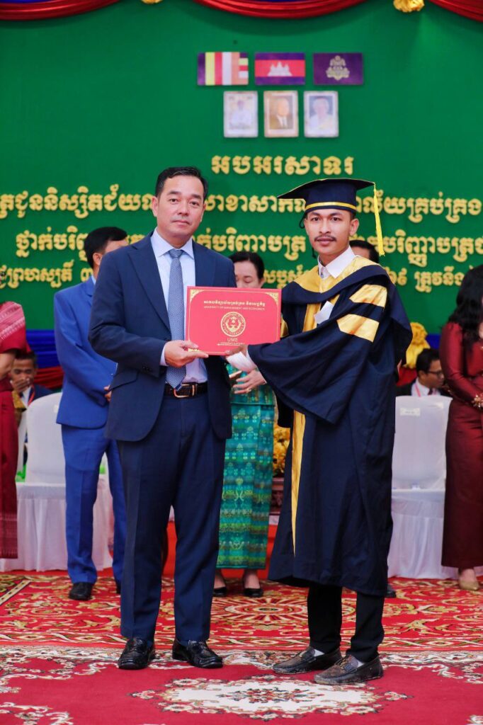 ហង់ ជួនណារ៉ុន ឧបនាយករដ្ឋមន្ត្រីក្រសួងអប់រំយុវជននិងកីឡា មានប្រសាសន៍បែបនេះនៅក្នុងពិធីប្រគល់សញ្ញាបត្រកម្រិតបរិញ្ញាបត្ររងបរិញ្ញាបត្រនិងបរិញ្ញាបត្រជាន់ខ្ពស់ជូនដល់និស្សិតជ័យលាភីចំនួន២២២៣នាក់(ក្នុងនោះស្រី១០៩៨នាក់)នៃសាខាសាកលវិទ្យាល័យគ្រប់គ្រងនិងសេដ្ឋកិច្ចខេត្តកំពង់ចាម(UME) ដោយធ្វើឡើងនៅទីលានមួយកន្លែង សង្កាត់សំបួរមាសក្រុងកំពង់ចាម នាព្រឹកថ្ងៃទី២៥កញ្ញា ឆ្នាំ ២០២៥ ។ជាមួយនោះមានការអញ្ជើញចូលរួមពីឯកឧត្តមអ៊ុន ចាន់ដាអភិបាលខេត្ត ព្រមទាំងរដ្ឋលេខាធិការអនុរដ្ឋលេខាធិការក្រសួងអប់រំ សាស្ត្រាចារ្យ អង្គភាពពាក់ព័ន្ធជុំវិញខេត្ត។