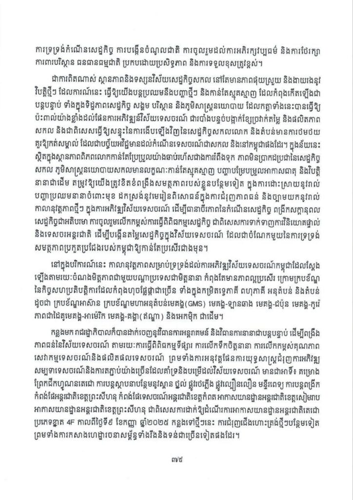 ២- ក្រសួងទេសចរណ៍ ដោយសហការជាមួយក្រសួង ស្ថាប័នពាក់ព័ន្ធ និងវិស័យឯកជន បន្តជំរុញ ឌីជីថលូបនីយកម្មនៅក្នុងការអភិវឌ្ឍវិស័យទេសចរណ៍កម្ពុជា ដើម្បីរក្សានូវភាពប្រកួតប្រជែងនៅក្នុងកម្រិតតំបន់ និងសកលលោក ដោយជំរុញឱ្យមានការចូលរួមពីអាជីវកម្មទេសចរណ៍ខ្នាតតូចបំផុត ខ្នាតតូច និងមធ្យម (MSMEs)ផងដែរ។