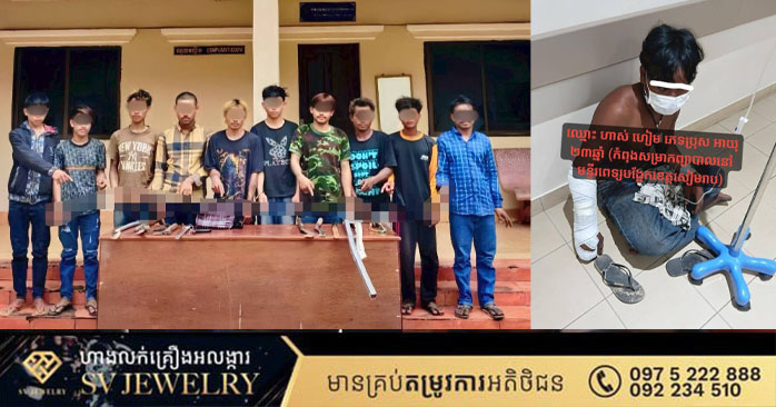 សៀមរាប ៖ កាលពីវេលាម៉ោង១៦:១៦ នាទី ថ្ងៃទី២៤ ខែកញ្ញា ឆ្នាំ២០២៥ មានករណីអំពើហិង្សាដោយចេតនា មានស្ថានទម្ងន់ទោស (ប្រព្រឹត្តដោយសហចារី និងប្រើប្រាស់អាវុធ កែច្នៃខុសច្បាប់) នៅចំណុចភូមិទ័ពស្វាយ ឃុំជប់តាត្រាវ ស្រុកអង្គរធំ ខេត្តសៀមរាប បង្ករឡើង ដោយជនសង្ស័យចំនួន០២ ក្រុមមានគ្នាចំនួន១២ នាក់ ក្រោយពីប្រព្រឹត្តអំពើហិង្សារួច ពួកគេបាននាំគ្នាគេចខ្លួនអស់។