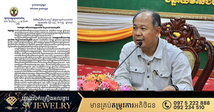 ភ្នំពេញ ៖ លិខិតតវ៉ារបស់ឯកឧត្តម អ៊ុំ រាត្រី អភិបាលនៃគណៈអភិបាលខេត្តបន្ទាយមានជ័យ នៃព្រះរាជាណាចក្រកម្ពុជា ទៅកាន់ អភិបាលខេត្តស្រះកែវ នៃព្រះរាជាណាចក្រថៃ ប្រឆាំងនឹងករណីរដ្ឋបាលខេត្តស្រះកែវលើកបដា នៅថ្ងៃទី២៨ ខែកញ្ញា ឆ្នាំ២០២៥ ដោយមានខ្លឹមសារប្រកាសអនុវត្តច្បាប់ក្នុងស្រុកថៃលើប្រជាពលរដ្ឋកម្ពុជារស់នៅក្នុងភូមិជោគជ័យ និងភូមិព្រៃចាន់ ឃុំអូរបីជាន់ ស្រុកអូរជ្រៅ ខេត្តបន្ទាយមានជ័យ។