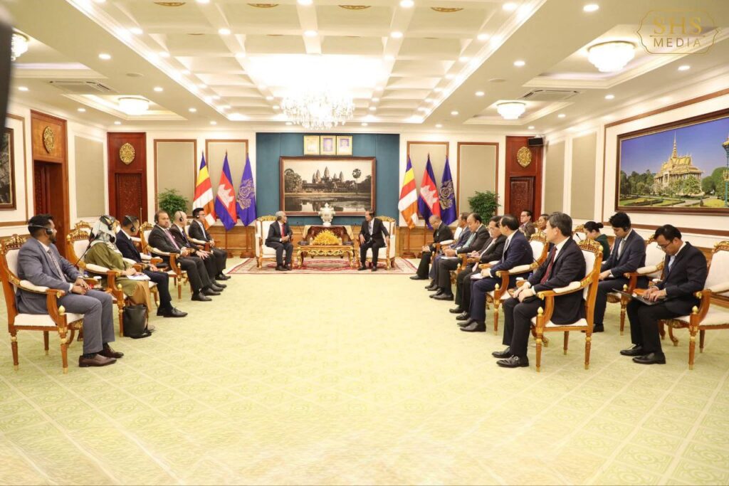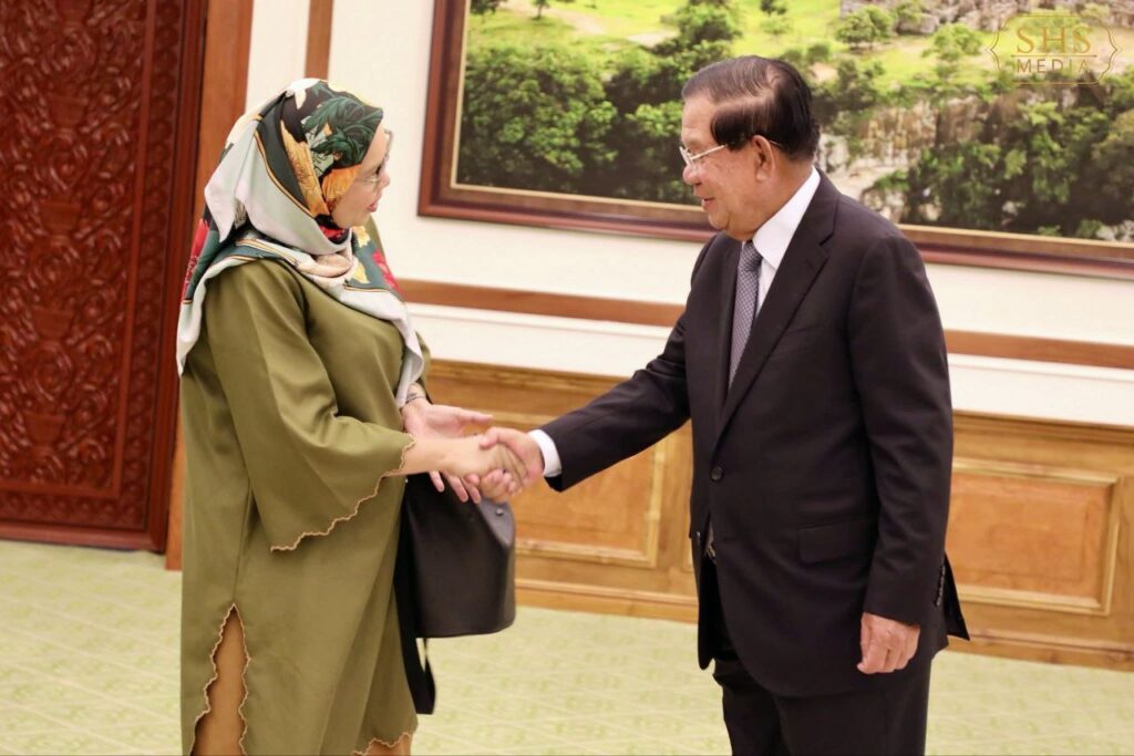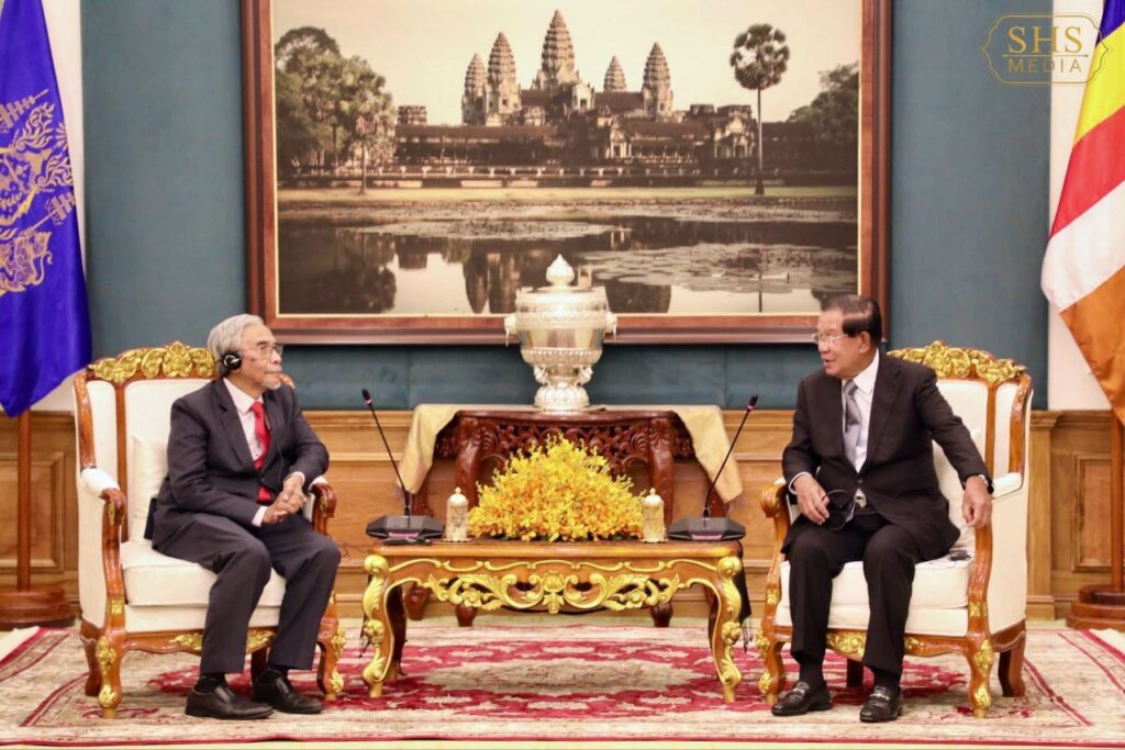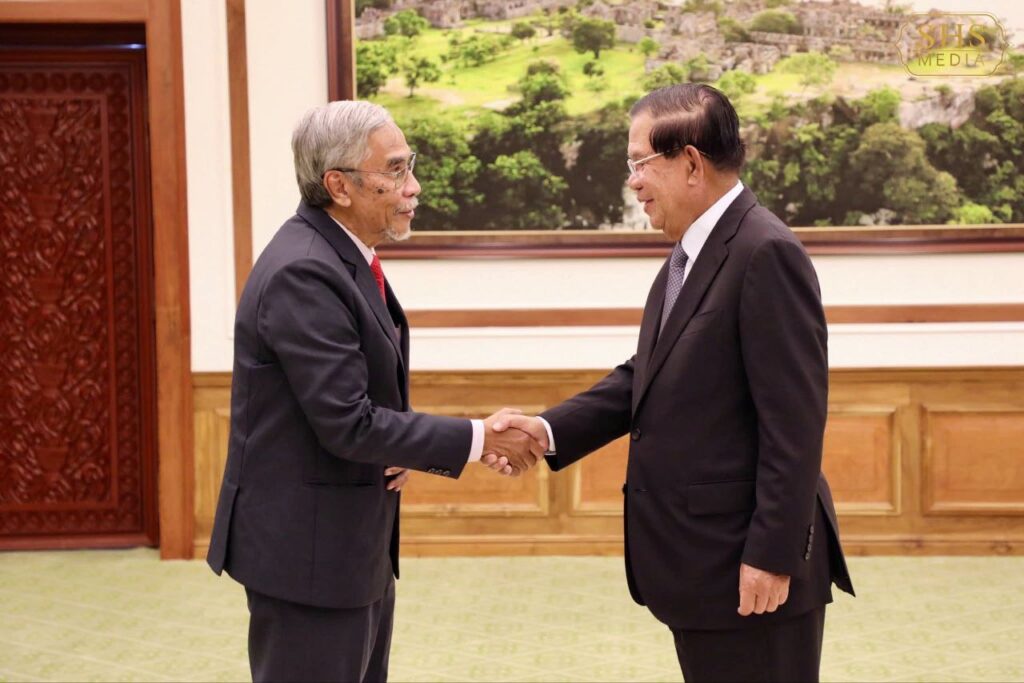 ភ្នំពេញ ៖ នៅវិមានព្រឹទ្ធសភា នារសៀលថ្ងៃព្រហស្បតិ៍ ១០កើត ខែអស្សុជ ឆ្នាំម្សាញ់ សប្តស័ក ពុទ្ធសករាជ ២៥៦៩ ត្រូវនឹងថ្ងៃទី២ ខែតុលា ឆ្នាំ២០២៥ សម្តេចអគ្គមហាសេនាបតីតេជោ ហ៊ុន សែន ប្រមុខរដ្ឋស្តីទីនៃព្រះរាជាណាចក្រកម្ពុជា អនុញ្ញាតឱ្យ ប្រតិភូសមាជិកព្រឹទ្ធសភាសហព័ន្ធម៉ាឡេស៊ីដឹកនាំដោយ ឯកឧត្តម Datuk Wira Dr. Mohd Hatta bin Md Ramli ចូលជួបសម្តែងការគួរសមនៅវិមានព្រឹទ្ធសភា។