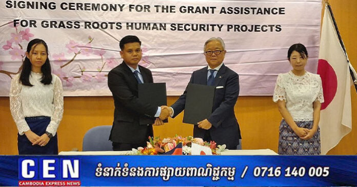 ភ្នំពេញ ៖ រដ្ឋាភិបាលជប៉ុន ផ្តល់ថវិកាសរុបចំនួន ២៦៧,៣៨៤ ដុល្លារអាមេរិក ដល់ស្ថាប័នទទួលជំនួយចំនួនពីរក្រោមគ្រោងការណ៍ជំនួយឥតសំណងសម្រាប់ គម្រោងទ្រង់ទ្រាយតូចសន្តិសុខមនុស្សជាតិ (គូសាណូណិ)។ កិច្ចសន្យាផ្តល់ជំនួយ ត្រូវបានចុះហត្ថលេខានៅថ្ងៃទី៣ខែតុលានេះ ដោយ ឯកឧត្តម អ៊ូអិណូ អាត់ស៊ូស៊ី ឯកអគ្គរាជទូតវិសាមញ្ញ និងពេញសមត្ថភាពរបស់ប្រទេសជប៉ុនប្រចាំព្រះរាជាណាចក្រកម្ពុជា និងតំណាងស្ថាប័នទទួលជំនួយទាំងពីរ ដើម្បីអនុវត្តគម្រោងដូចតទៅៈ