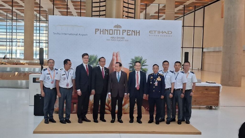 ការទទួលស្វាគមន៍ការមកដល់នៃអ្នកដំណើរ និងជើងហោះហើររបស់ក្រុមហ៊ុន Etihad Airways មានការចូលរួមពីរដ្ឋមន្ត្រីក្រសួងទេសចរណ៍ ឯកឧត្តម ហួត ហាក់ និងថ្នាក់ដឹកនាំរដ្ឋលេខាធិការអាកាសចរស៉ីវិល និងស្ថាប័នពាក់ព័ន្ធមួយចំនួនទៀត។