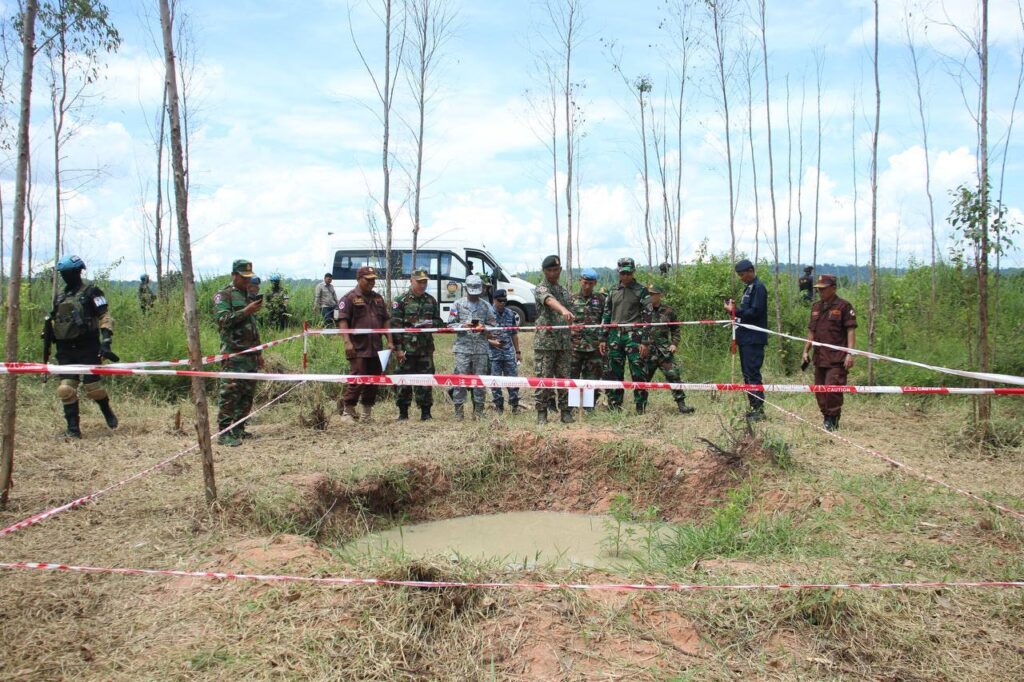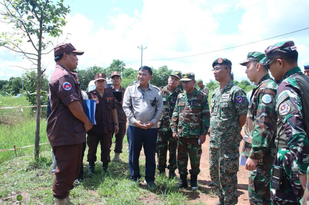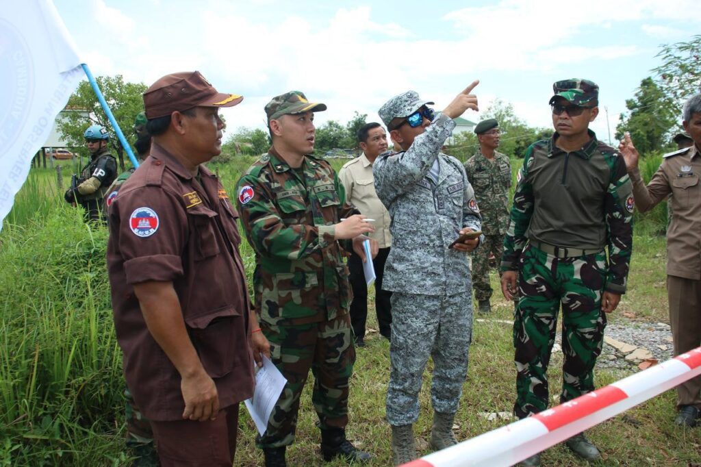 លោកជំទាវ ឧត្តមសេនីយ៍ឯក ម៉ាលី សុជាតា អ្នកនាំពាក្យក្រសួងការពារជាតិ នៃព្រះរាជាណាចក្រកម្ពុជា បានថ្លែងថា នៅព្រឹកថ្ងៃសៅរ៍ ទី០៤ ខែតុលា ឆ្នាំ២០២៥ ក្រសួងការពារជាតិ នៃព្រះរាជាណាចក្រកម្ពុជា បានសម្របសម្រួលជូនក្រុមអ្នកសង្កេតការណ៍អន្តរកាល (IOT) ដឹកនាំដោយប្រទេសម៉ាឡេស៊ី រួមនិងសមាជិក បានអញ្ជើញចុះពិនិត្យទីតាំងជាក់ស្តែង ដែលរងផលប៉ះពាល់តាមរយៈការប្រើប្រាស់យន្តហោះចម្បាំងទំលាក់គ្រាប់MK84 នៅតំបន់ភូមិថ្មដូន ឃុំគោកមន ស្រុកបន្ទាយអំពិល ខេត្តឧត្តរមានជ័យ ដេីម្បីធ្វេីការសង្កេត ផ្ទៀងផ្ទាត់ និងរាយការណ៍ ក្រោយបទឈប់បាញ់បានចូលជាធរមាន៕ រក្សាសិទ្ធដោយ៖សុទ្ធលី