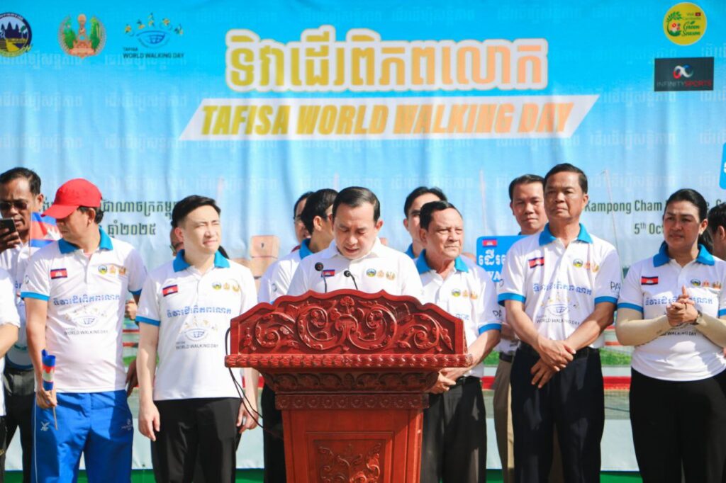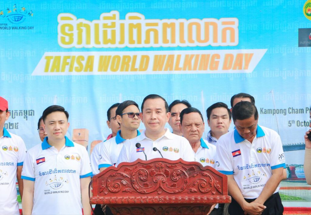 ខេត្តកំពង់ចាម:”គិតត្រឹមរយៈពេល៨ខែដើមឆ្នាំ២០២៥ នេះភ្ញៀវទេសចរណ៍អន្តរជាតិអញ្ជើញមកលេងនៅកម្ពុជាមានប្រមាណជាង៤លាននាក់ហើយភ្ញៀវជាតិវិញមានប្រមាណ១៧លាននិង២៨ ម៉ឺននាក់គឺមានការកើនឡើង៥៣% បើប្រៀបធៀបរយៈពេលដូចគ្នាឆ្នាំ២០២៤”។នេះជាប្រសាសន៍លើកឡើងពីសំណាក់ឯកឧត្តមហួត ហាក់ រដ្ឋមន្ត្រីក្រសួងទេសចរណ៍ថ្លែងនៅក្នុងព្រឹត្តិការណ៍ដើរដើម្បីសន្តិភាព walk for peace ហ្នឹងអបអរសាទរដើរពិភពលោកworld walking day ដោយធ្វើឡើងនៅព្រឹកថ្ងៃទី៥តុលាឆ្នាំ ២០២៥ស្ថិតនៅវិមានឯករាជ្យ ក្រុងកំពង់ចាម ជាមួយនោះមានការចូលរួមពីសំណាក់មន្ត្រីរាជការ កងកម្លាំងប្រដាប់អាវុធ ព្រះសង្ឃ ព្រមទាំងបងប្អូនគ្រីសបរិស័ទ ជនបរទេសសរុបចំនួនប្រមាណ៥០០០នាក់។
