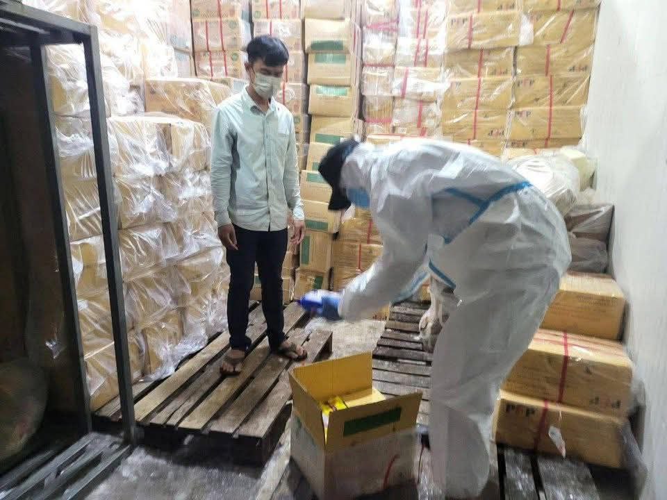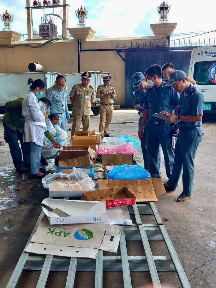 ភ្នំពេញ ៖ សមត្ថកិច្ចចម្រុះ រួមមានមន្រ្តីគយចល័តតំបន់១ , មន្ត្រី ក.ប.ប ក្រសួងពាណិជ្ជកម្ម មន្រ្តីនគរបាលសេដ្ឋកិច្ចស្នងការដ្ឋាននគរបាលរាជធានីភ្នំពេញ រួមទាំងមន្ត្រីមូលដ្ឋាន បានចុះត្រួតពិនិត្យសាច់ក្លាសេ របស់ ឧកញ៉ា អ៉ឹម សុផាន់ណារឹទ្ធ ហៅចែទូច ចំនួន ២ទីតាំង នៅសង្កាត់ច្រាំងចំរេះ១ ខណ្ឌឫស្សីកែវ រាជធានីភ្នំពេញ រកឃេីញសាច់ក្លាសេ សរុបចំនួន ៣មុខ សាច់មាន់ សាច់ទា សាច់ជ្រូក សរុបចំនួនជាង ២៤៤តោន, សាច់បង្កកទាំងនេះត្រូវបានគេដឹងច្បាស់ថា នាំចូលពីប្រទេសថៃ ខណៈយោធាថៃកំពុងមានកម្លាំងដើរហ៊ុមព័ទ្ធបន្លាលួស ឈ្លានពានយកទឹកដីកម្ពុជា ដោយសារបានទុនពីឈ្មួញខ្មែរយើងដែលទិញផលិតផលថៃ ឬចិញ្ចឹមពួកថៃ ហើយថៃទុននេះ ទៅទិញកាំភ្លើងទំនើបៗបាញ់ខ្មែរ។