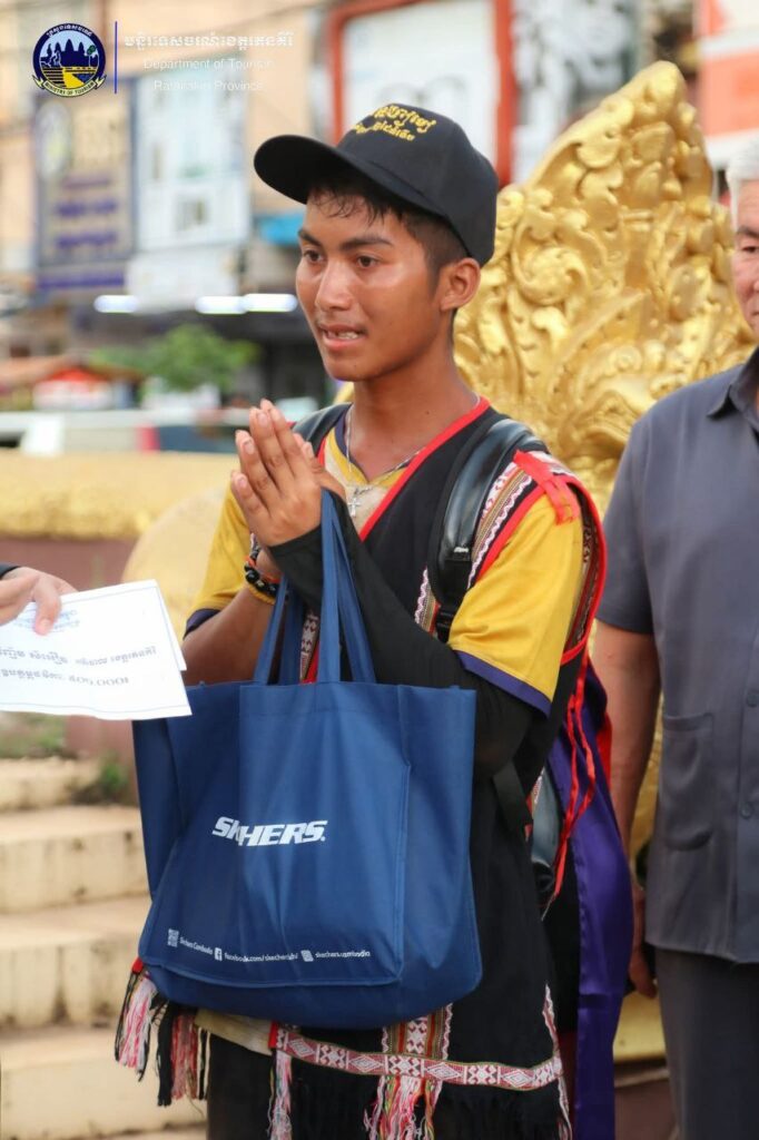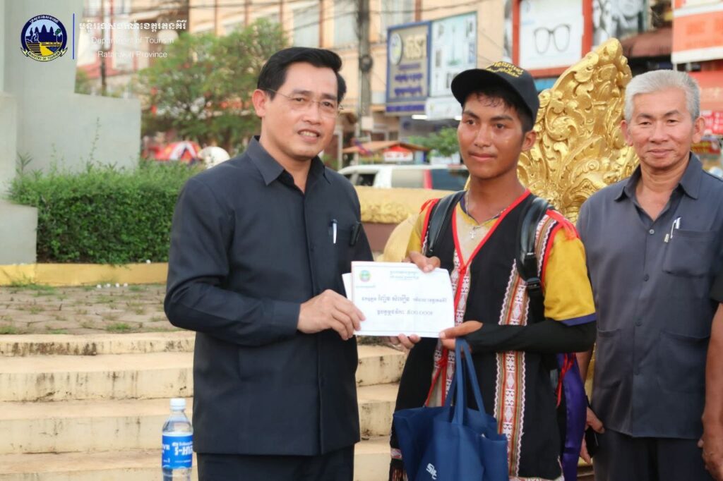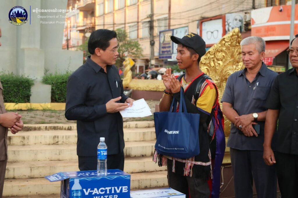 ខេត្តរតនគិរី ៖ មន្ទីរទេសចរណ៍ខេត្តរតនគិរី បានចេញផ្សាយព័ត៌មានឲ្យដឹងថា ដោយមានការចង្អុលបង្ហាញពី ឯកឧត្តម ញ៉ែម សំអឿន អភិបាលនៃគណៈអភិបាលខេត្ត ក្រុមការងារបានពាំនាំថវិការ ដឹកនាំដោយ ឯកឧត្តម ឌុច ចាន់តូ អភិបាលខេត្តស្តីទី និងអាជ្ញាធរខេត្ត ក្រុង ស្រុក ថ្នាក់ដឹកនាំឃុំសង្កាត់ មន្ទីរជំនាញ និងប្រជាពលរដ្ឋ បានទទួលស្វាគមន៍ ព្រមទាំងសាទរជាមួយយុវជន និងបាននាំយកនូវថវិការលើកទឹកចិត្តមួយចំនួនដល់យុវជន រម៉ាស់ ឃ្វេន ដែលមានឆន្ទៈធ្វើដំណើរដោយថ្មើរជើងពីរាជធានីភ្នំពេញមកកាន់ទឹកដីឦសានខេត្តរតនគិរី ក្នុងគោលបំណងផ្សព្វផ្សាយពីតំបន់ទេសចរណ៍ក្នុងខេត្តរតនគិរី។