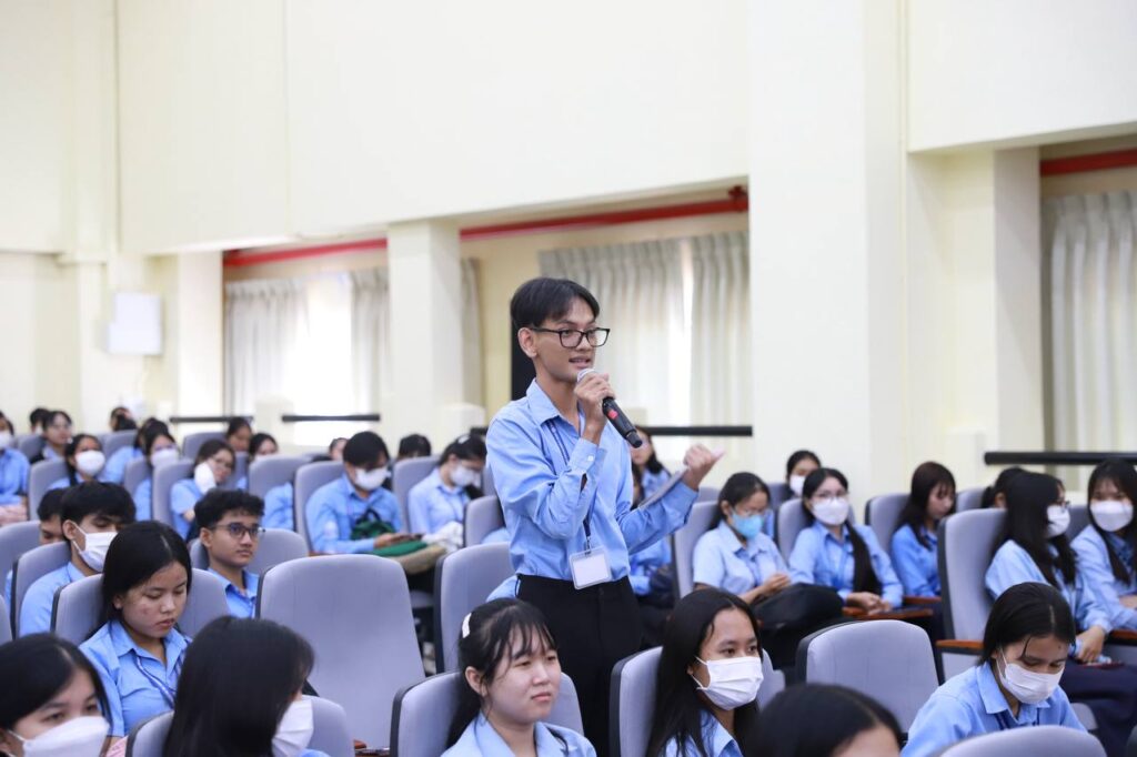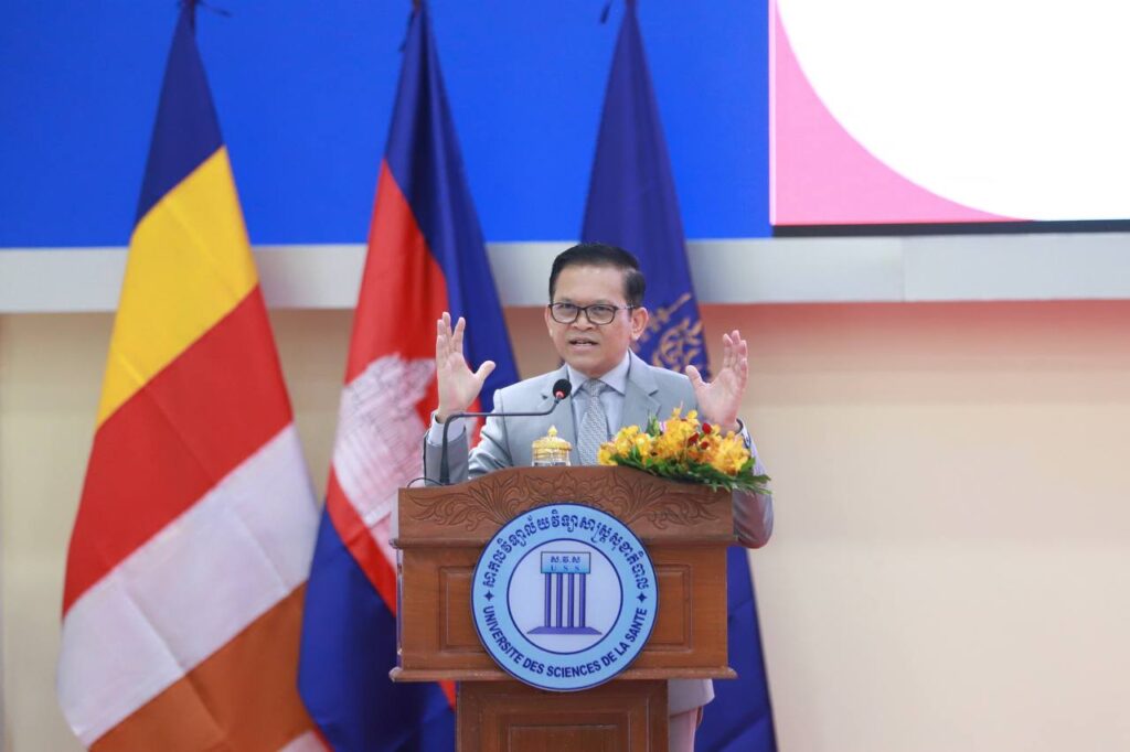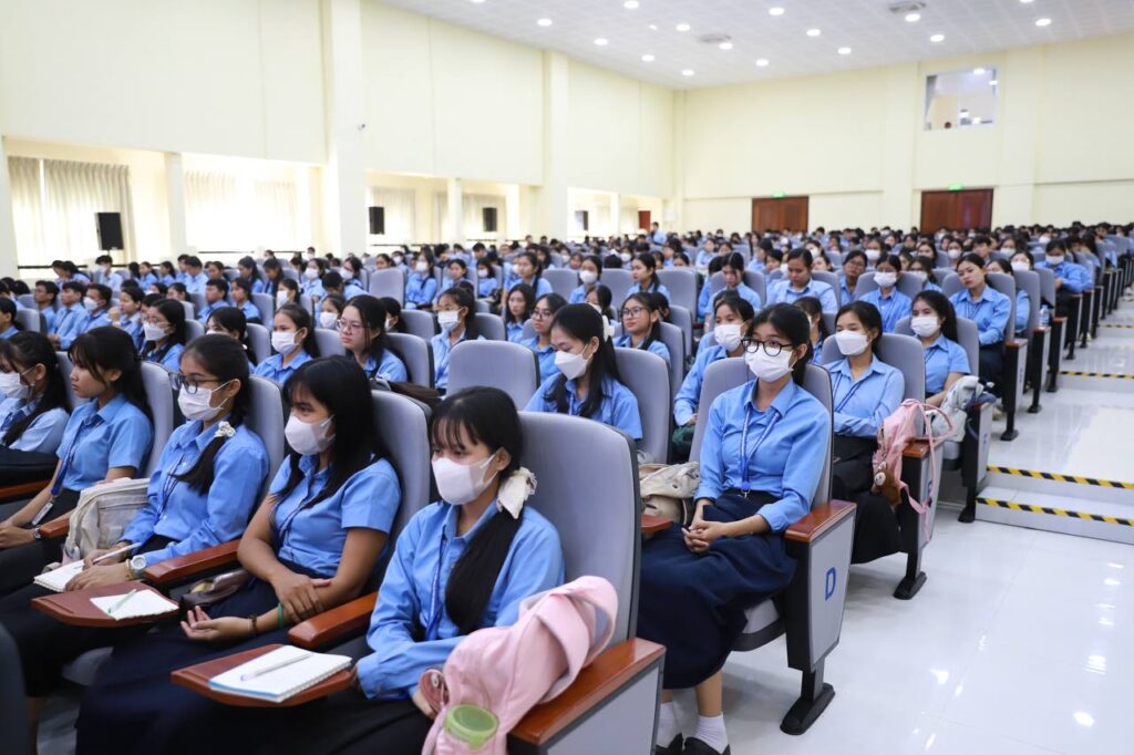 ភ្នំពេញ ៖ និស្សិតនៃសាកលវិទ្យាល័យវិទ្យាសាស្ត្រសុខាភិបាល រួមទាំងគណៈគ្រប់គ្រង សាស្ត្រាចារ្យ លោកគ្រូ អ្នកគ្រូ សរុបជាង ៥០០នាក់ បានចូលរួមស្តាប់បាឋកថាស្ដីពី «ការចូលរួមរបស់យុវជនដើម្បីឆ្ពោះទៅសម្រេចចក្ខុវិស័យកម្ពុជាឆ្នាំ២០៥០» ដែលធ្វើបទបង្ហាញដោយឯកឧត្តម ប៉ែន បូណា រដ្ឋមន្ត្រីប្រតិភូអមនាយករដ្ឋមន្ត្រី និងជាប្រធានអង្គភាពអ្នកនាំពាក្យរាជរដ្ឋាភិបាល។ បាឋកថានេះ ធ្វើឡើងនាព្រឹកថ្ងៃទី៨ ខែតុលា ឆ្នាំ២០២៥ ដោយមានវត្តមានអញ្ជើញចូលរួម និងថ្លែងសុន្ទរកថាស្វាគមន៍ពីលោកសាស្រ្តាចារ្យជំនួយ អៀង រ័ត្នមុនី សាកលវិទ្យាធិការរងនៃសាកលវិទ្យាល័យវិទ្យាសាស្រ្តសុខាភិបាល (ស.វ.ស) តំណាងឯកឧត្តម សាស្រ្តាចារ្យ សាផុន វឌ្ឍនៈ សាកលវិទ្យាធិការនៃស.វ.ស និងជាទីប្រឹក្សាក្រសួងសុខាភិបាល។