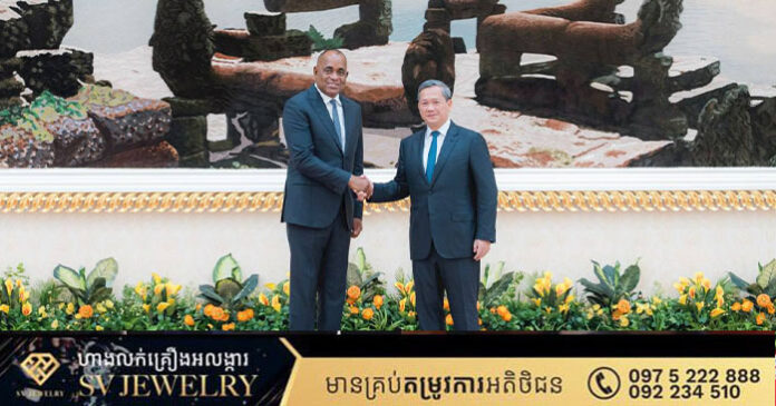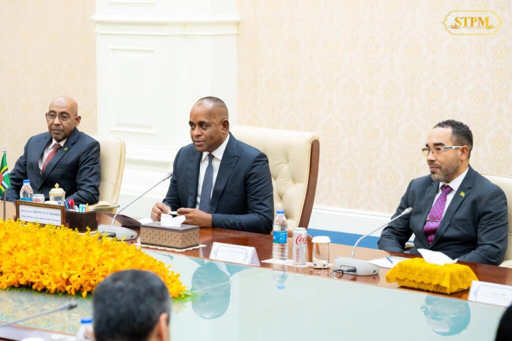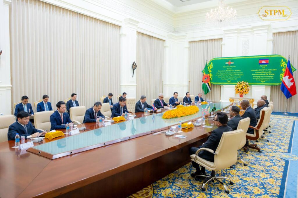 ភ្នំពេញ ៖ ព្រឹកថ្ងៃព្រហស្បតិ៍ ទី៩ តុលា ២០២៥ សម្តេចបវរធិបតី ហ៊ុន ម៉ាណែត នាយករដ្ឋមន្រ្តីកម្ពុជា បានអញ្ជើញជួបជាមួយ ឯកឧត្តមបណ្ឌិត Roosevelt Skerrit នាយករដ្ឋមន្ត្រីនៃកុំមិនវែលដូមីនីក ក្នុងជំនួបសម្តែងការគួរសម និងពិភាក្សាការងារ នៅវិមានសន្តិភាព៕ រក្សាសិទ្ធដោយ៖សុទ្ធលី