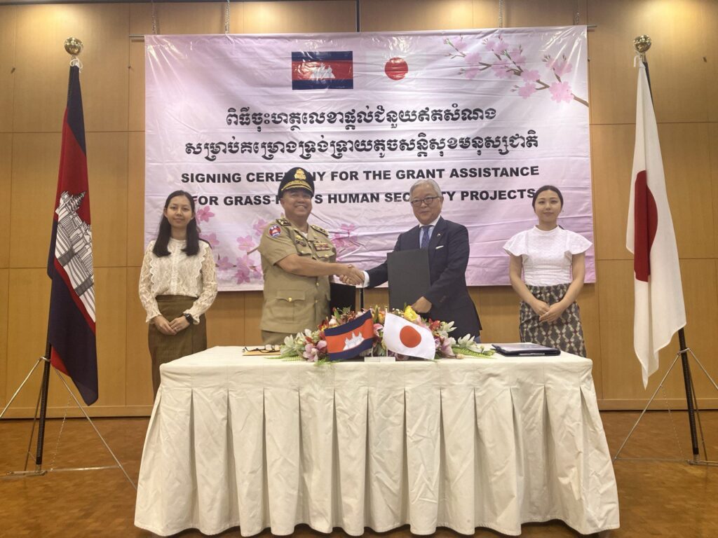 ភ្នំពេញ ៖ រដ្ឋាភិបាលជប៉ុន ផ្ដល់ថវិកាសរុបចំនួន ១៨៣,៥៨៨ ដុល្លារអាមេរិក ដល់ស្ថាប័នទទួលជំនួយចំនួនពីរ ក្រោមគ្រោងការណ៍ជំនួយឥតសំណងសម្រាប់គម្រោងទ្រង់ទ្រាយតូចសន្តិសុខមនុស្សជាតិ (គូសាណូណិ)។ កិច្ចសន្យាផ្តល់ជំនួយ ត្រូវបានចុះហត្ថលេខានៅថ្ងៃទី៩ខែតុលាឆ្នាំ២០២៥នេះ ដោយ ឯកឧត្តម អ៊ូអ៊ិណុ អាត់ស៊ូស៊ី ឯកអគ្គរាជទូត វិសាមញ្ញ និងពេញសមត្ថភាពរបស់ប្រទេសជប៉ុនប្រចាំព្រះរាជាណាចក្រកម្ពុជា និង តំណាងស្ថាប័នទទួលជំនួយ ទាំងពីរ ដើម្បីអនុវត្តគម្រោងដូចតទៅ៖