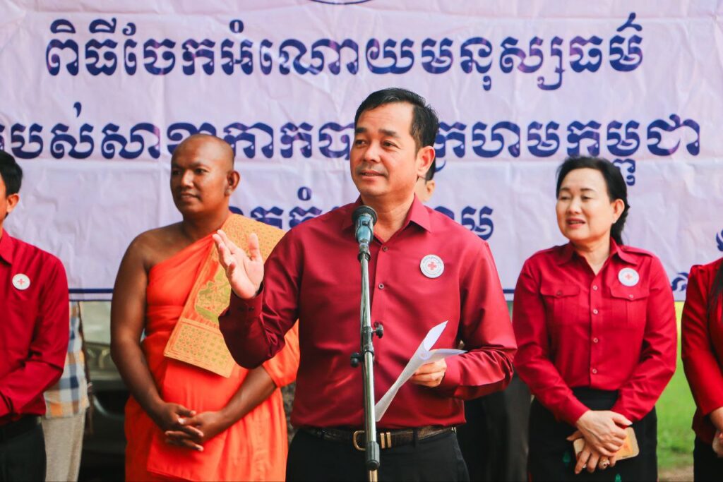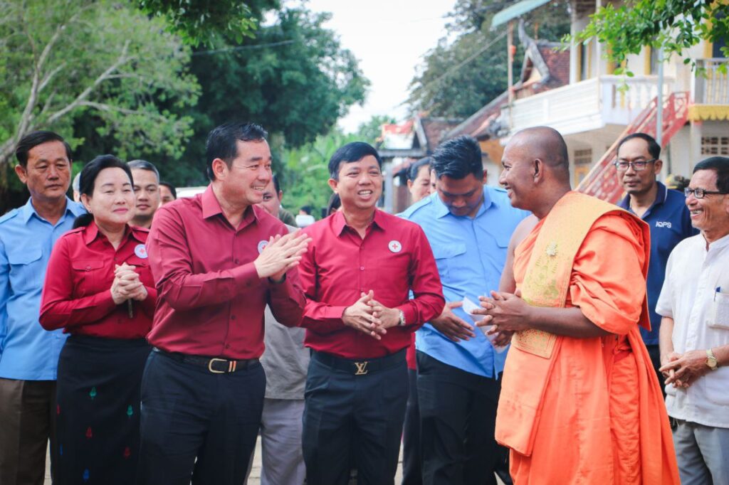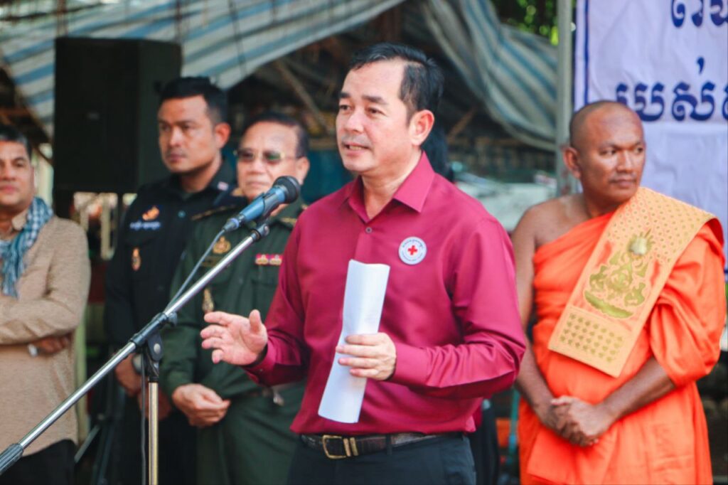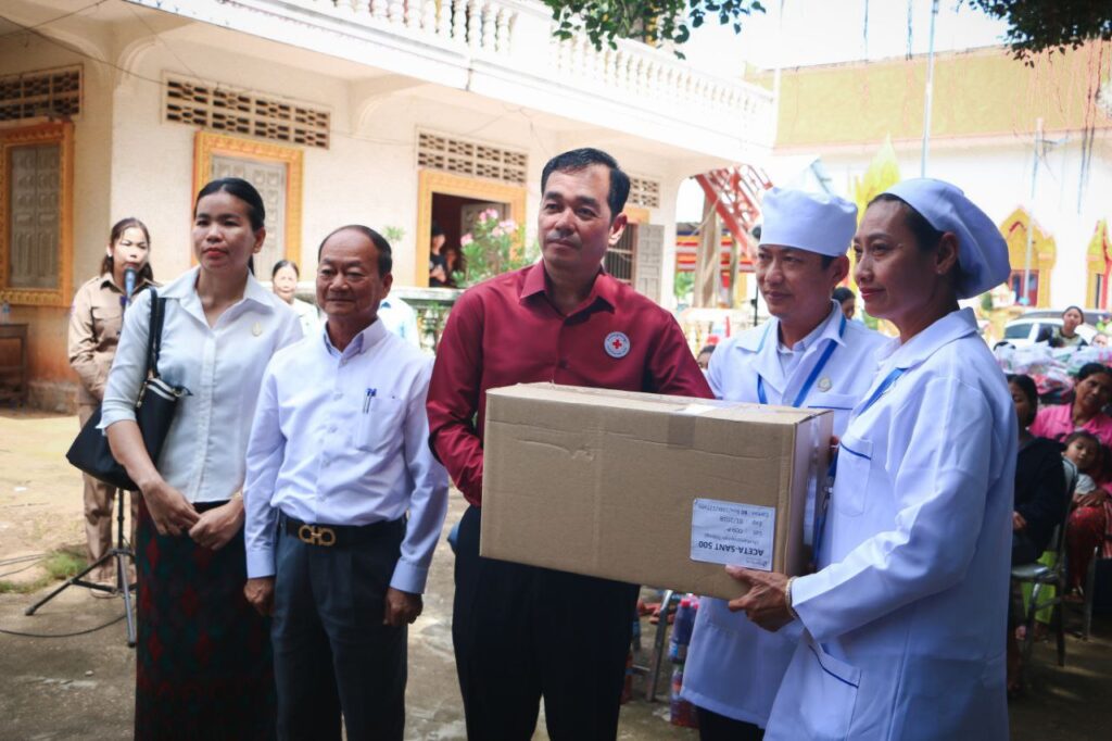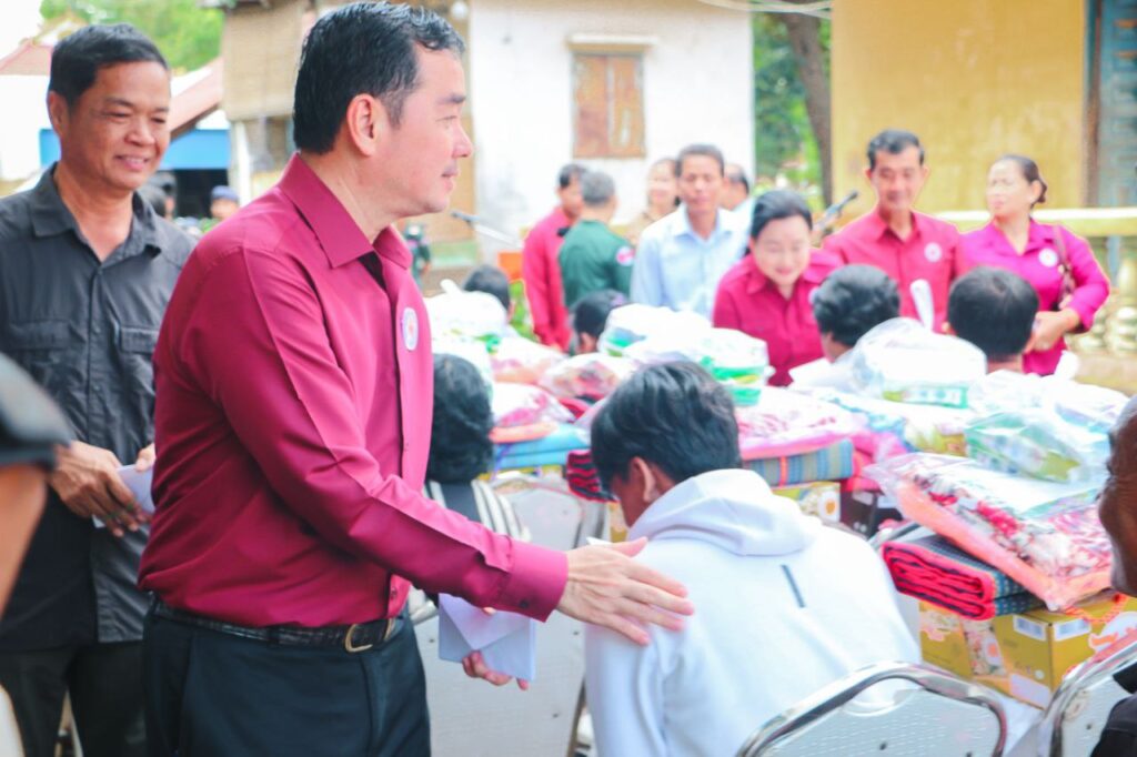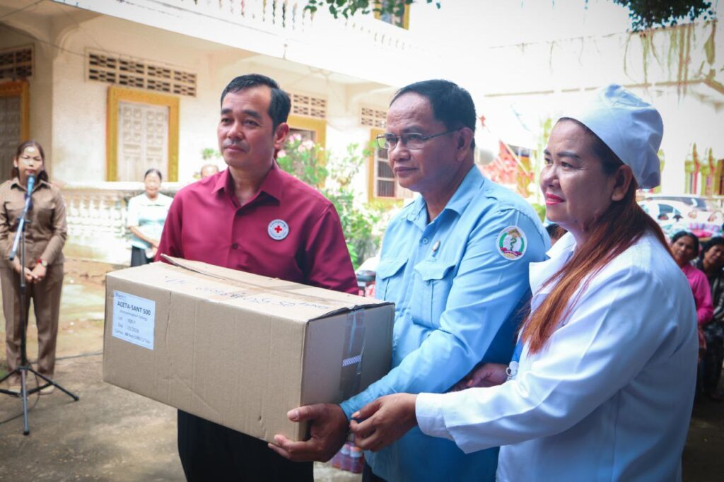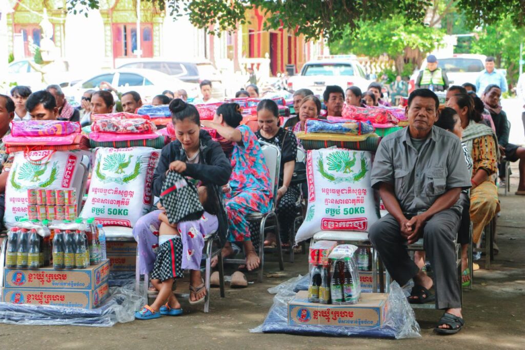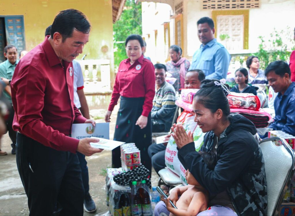 ខេត្តកំពង់ចាម: “សូមបងប្អូនប្រជាពលរដ្ឋដែលមានផ្ទះត្រូវបានរងគ្រោះដោយទឹកជំនន់ពីទន្លេមេគង្គសូមបង្កើនការប្រុងប្រយ័ត្នថែទាំសុខភាពចៀសវាងកុំឲ្យមានជំងឺរាគរូសប្រសិនបើឈឺត្រូវប្រញាប់ទៅមណ្ឌលសុខភាព ដើម្បីព្យាបាលជំងឺឲ្យបានទាន់ពេលវេលា។”នេះជាប្រសាសន៍លើកឡើងពីសំណាក់ឯកឧត្តមអ៊ុន ចាន់ដា អភិបាលខេត្តក្នុងឱកាសចែកដំណោយដល់ប្រជាពលរដ្ឋមកពីឃុំចំនួន៣ក្នុងនោះមានឃុំកោះសំរោង ឃុំកោះទន្ទឹមនិងឃុំកោះអណ្ដែត ដោយធ្វើឡើងនាព្រឹកថ្ងៃទី ៩តុលាឆ្នាំ២០២៥ នៅក្នុងបរិវេណវត្តបល្ល័ង្គ ឃុំរអាង ស្រុកកំពង់សៀម។